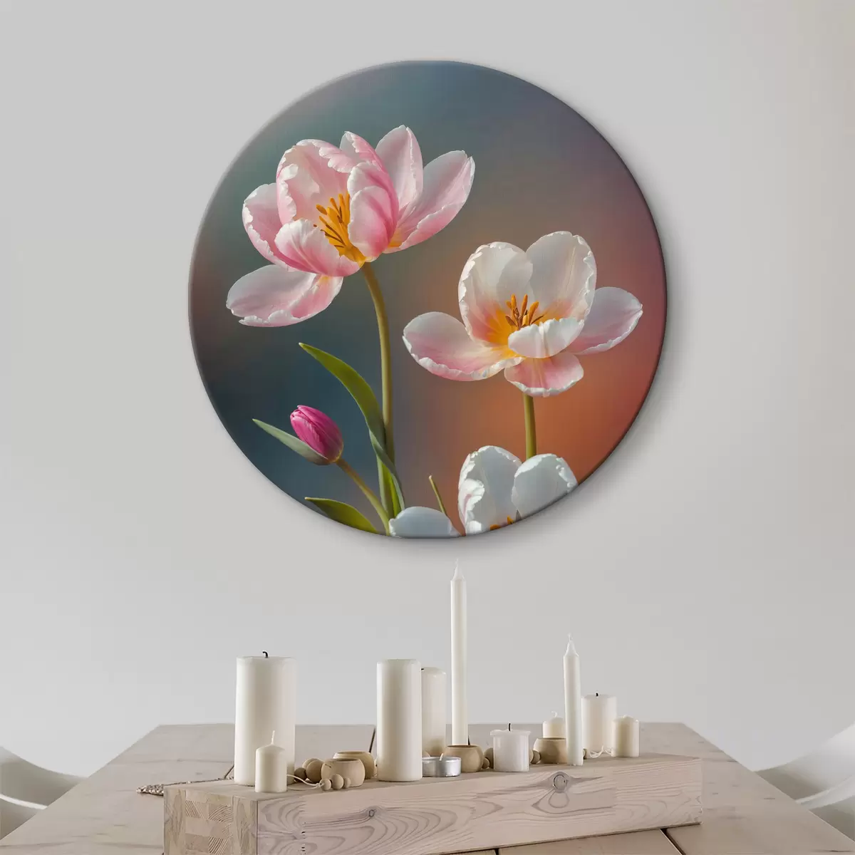 Кругла картина Рожеві квіти на розмитому тлі Nr r40644