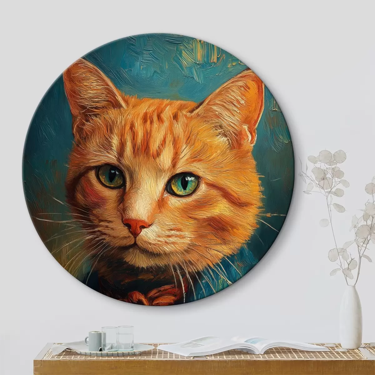 Кругла картина Рудий кіт у костюмі в стилі портрета Ван Гога r40647