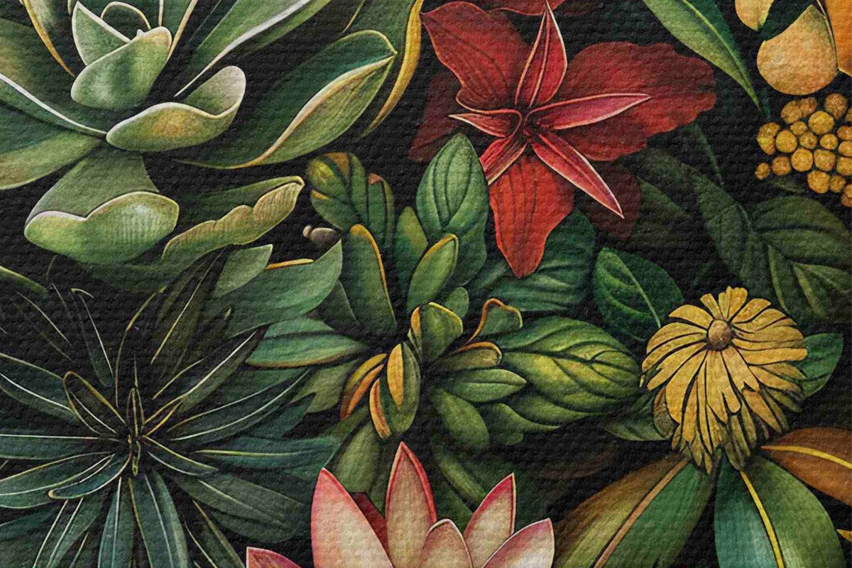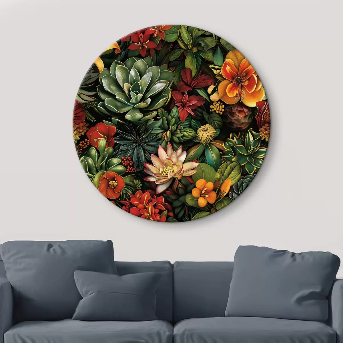 Кругла картина Пишний сад з сукулентами та тропічними квітами Nr r40666