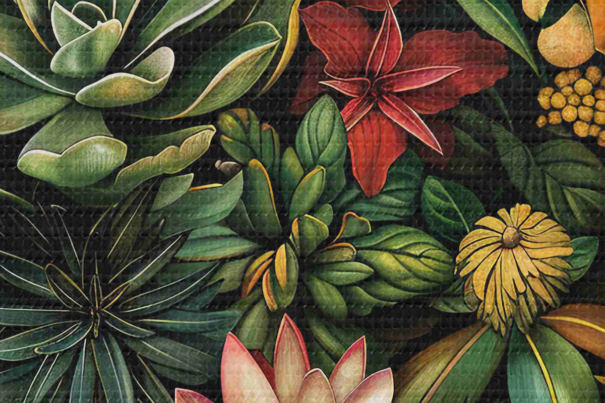 Кругла картина Пишний сад з сукулентами та тропічними квітами r40666