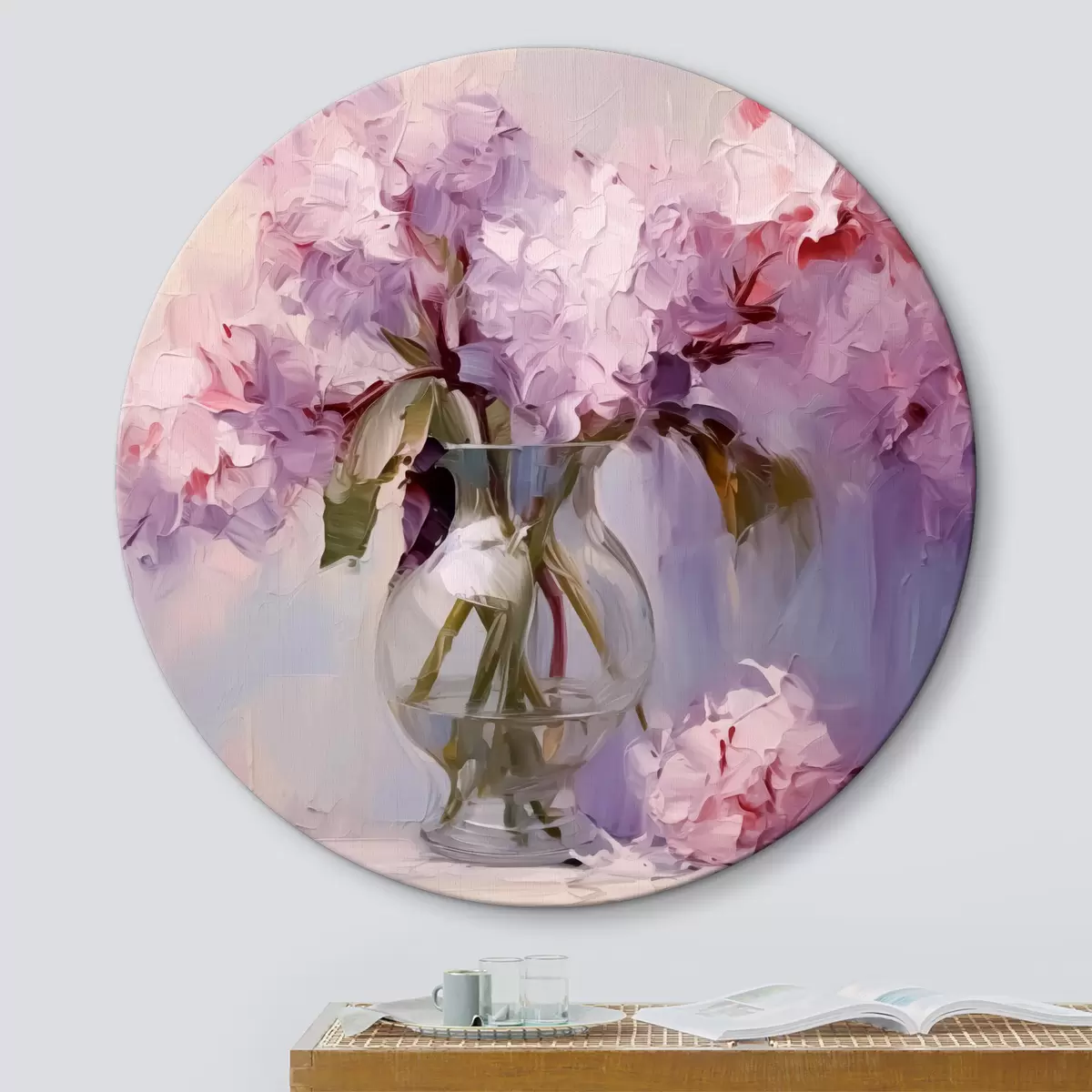 Кругла картина Гіацинти в скляній вазі в пастельних тонах Nr r40678
