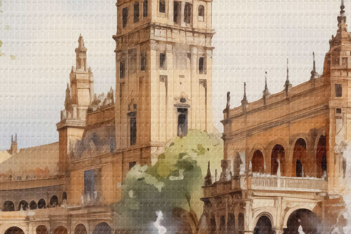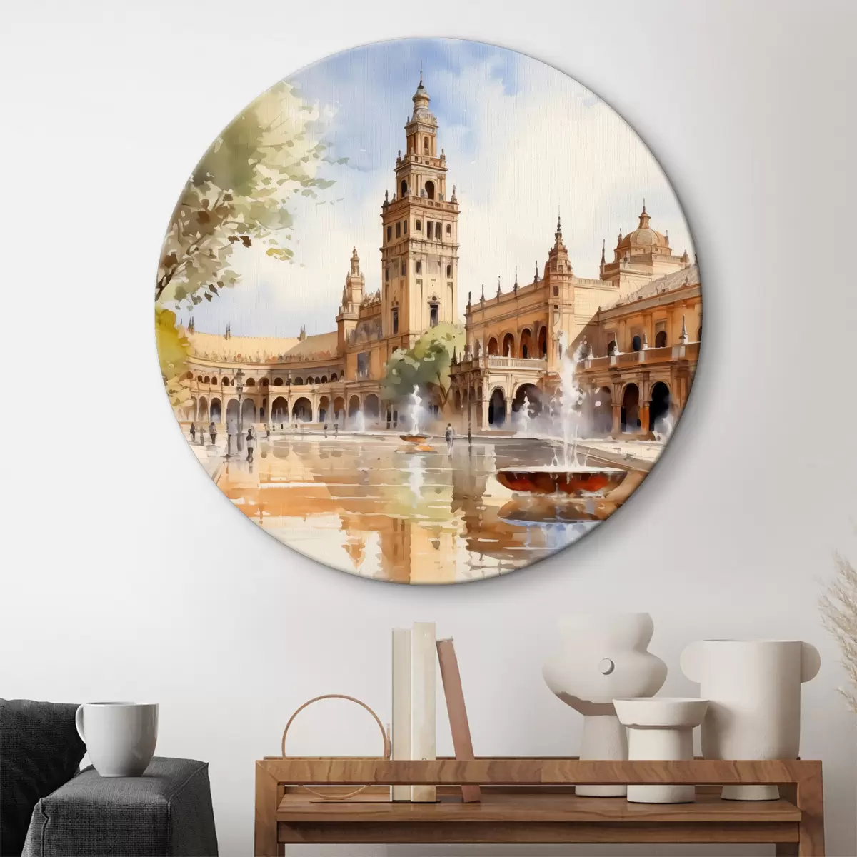 Кругла картина Замкова площа у місті акварелі Nr r40681