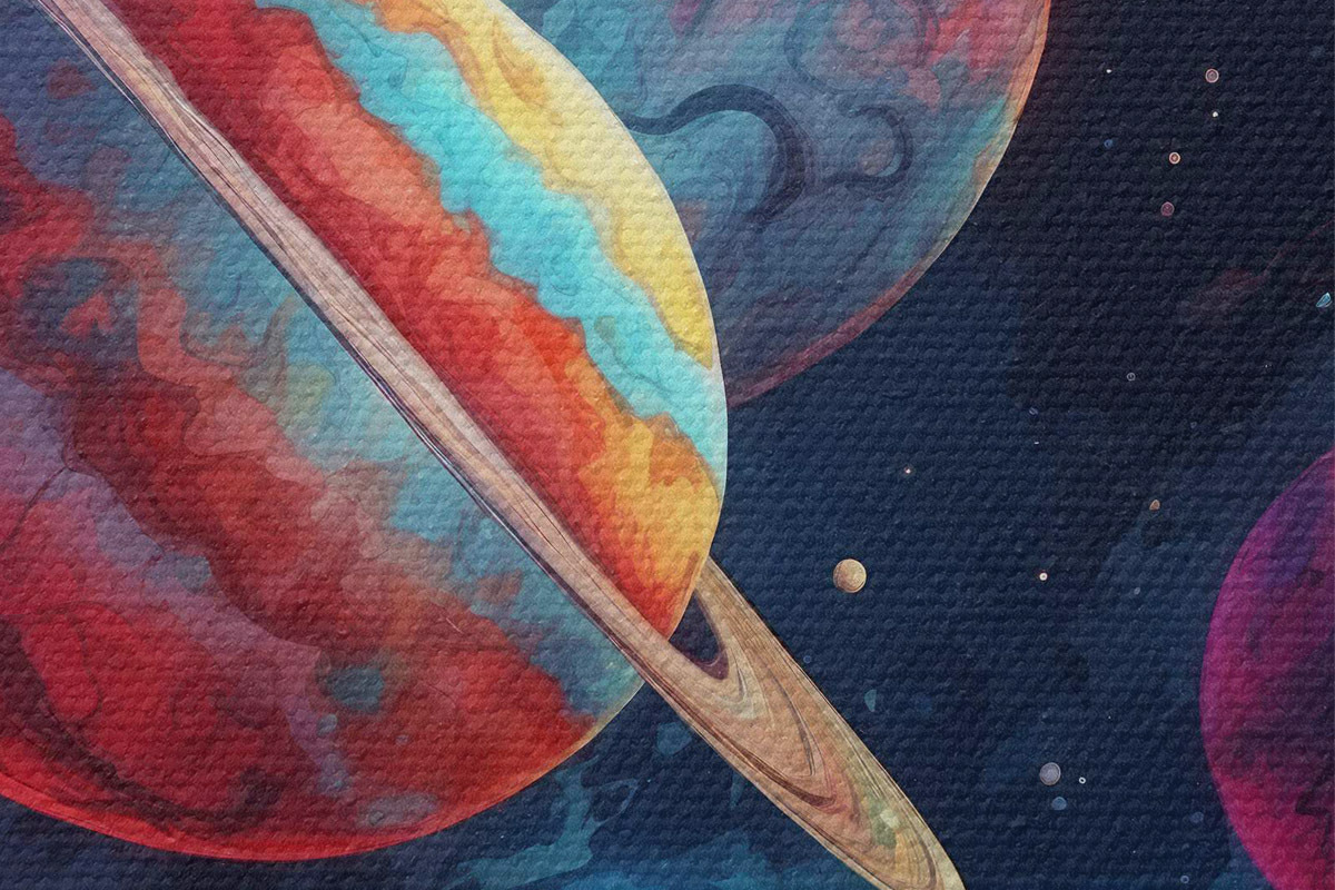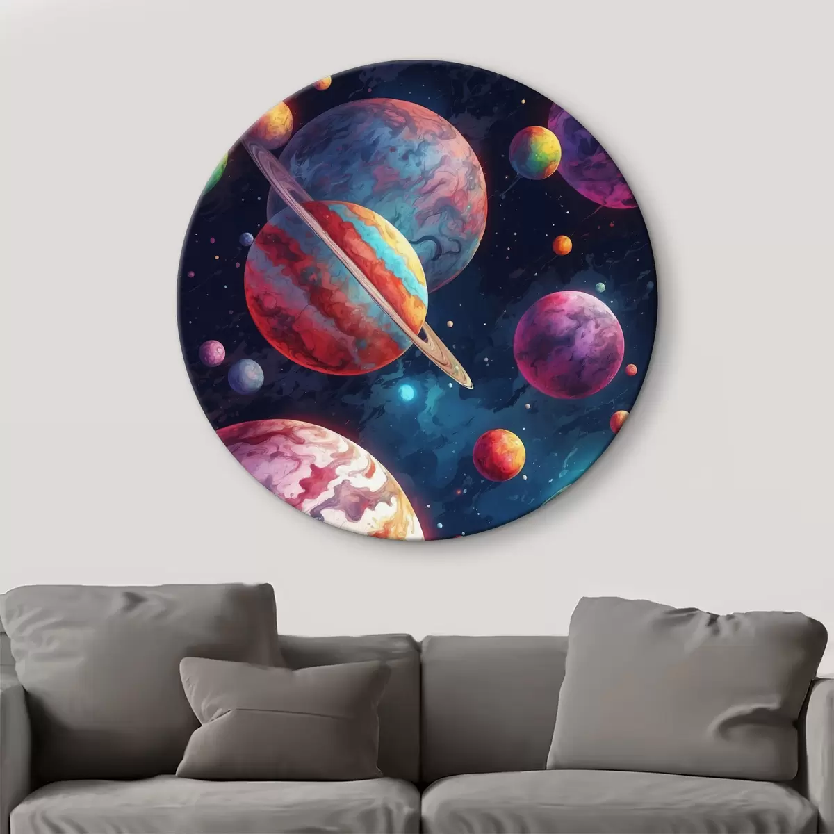 Кругла картина Кольорові планети r40698
