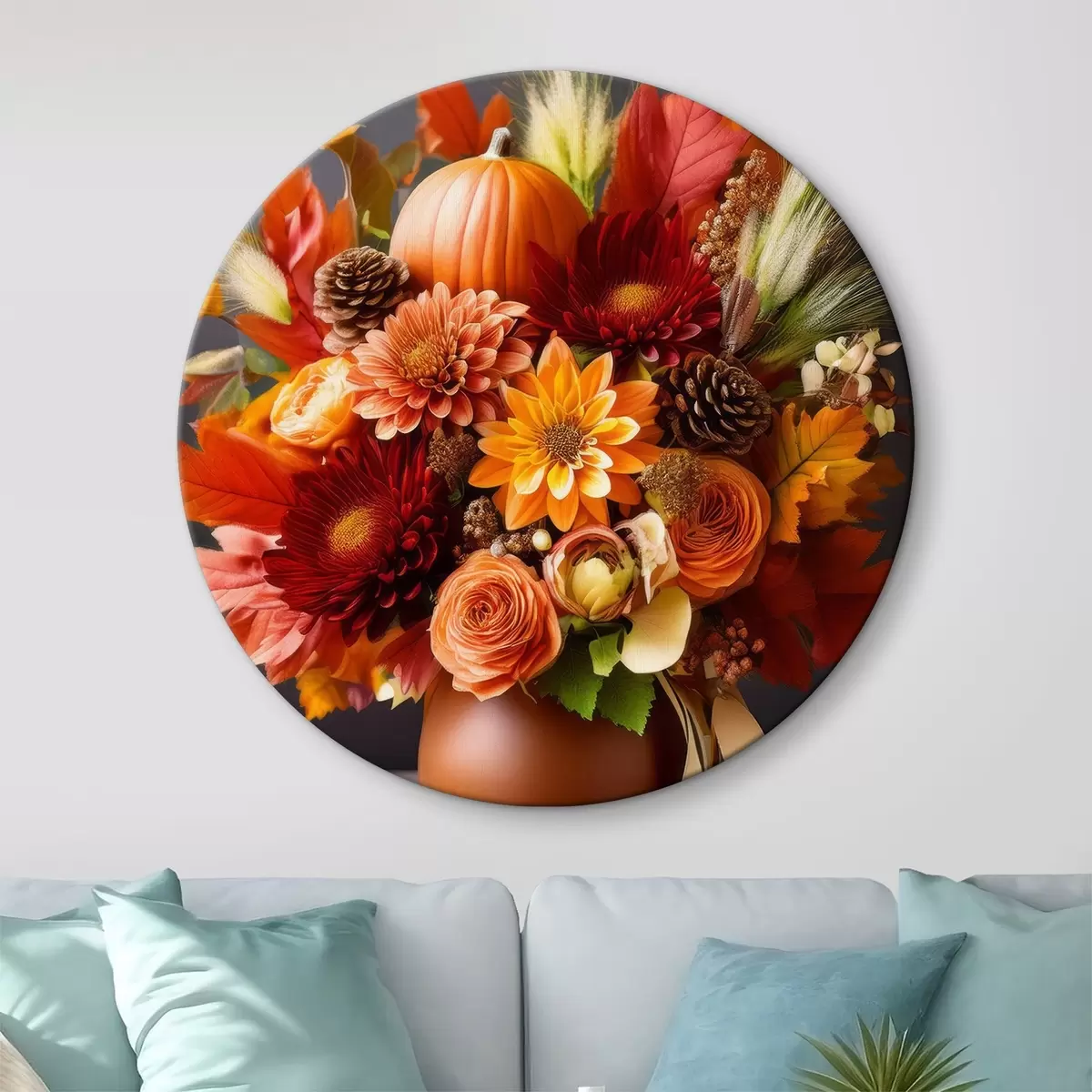 Кругла картина осінній букет, осінні квіти Nr r40714