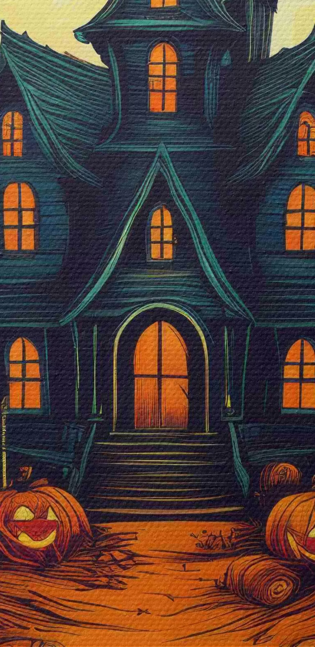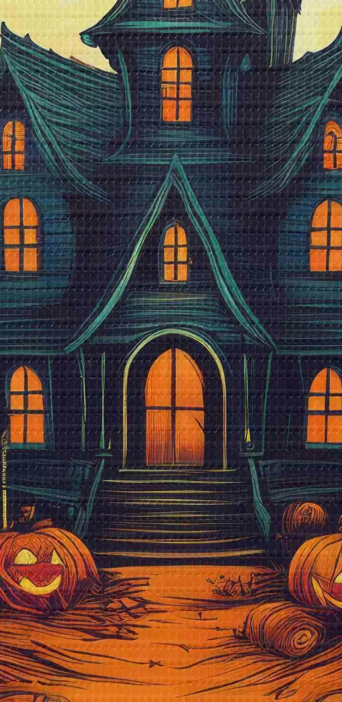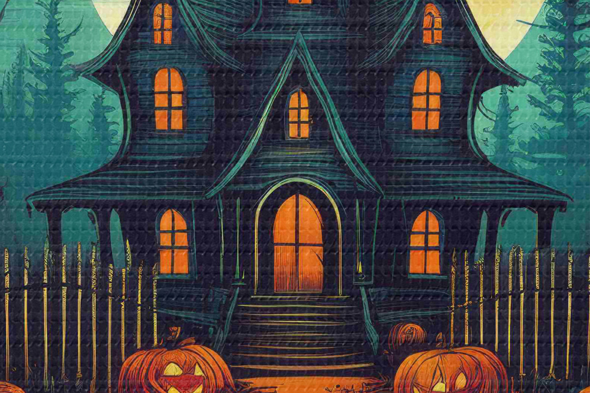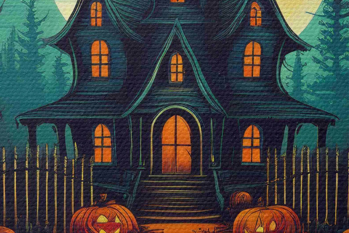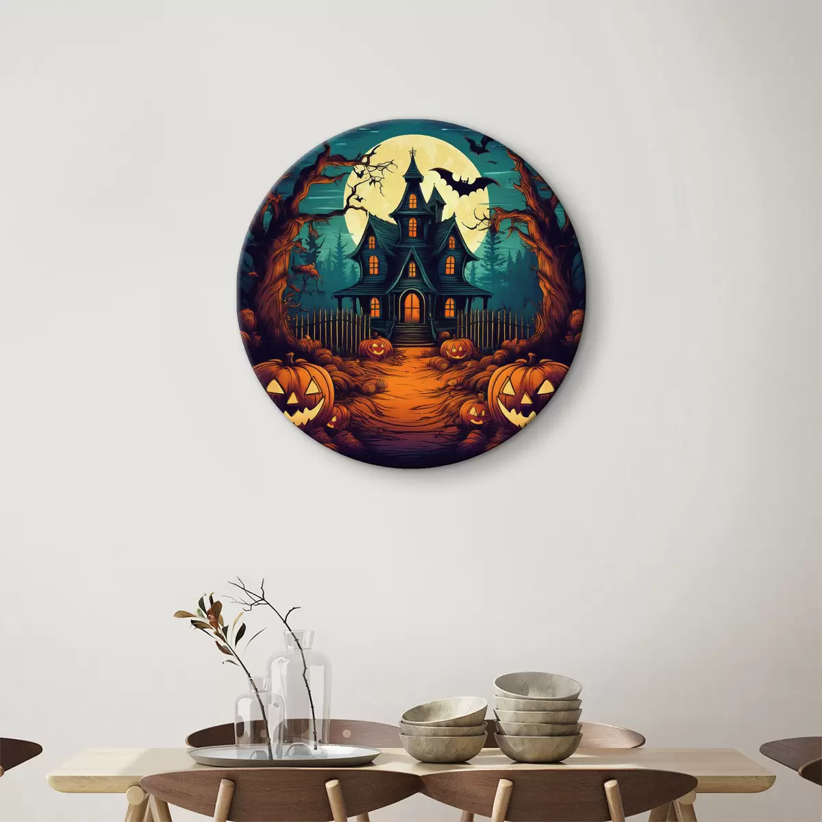 Кругла картина Геловін, замок у лісі, жахи, кажани Nr r40715