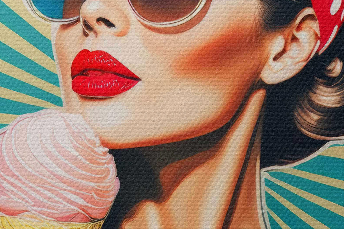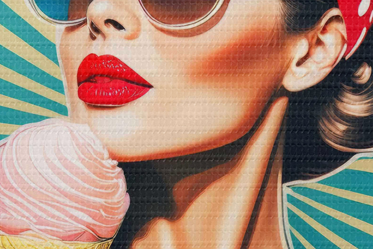 Кругла картина дівчинка з морозивом, поп-арт, пін-ап, ретро Nr r40718