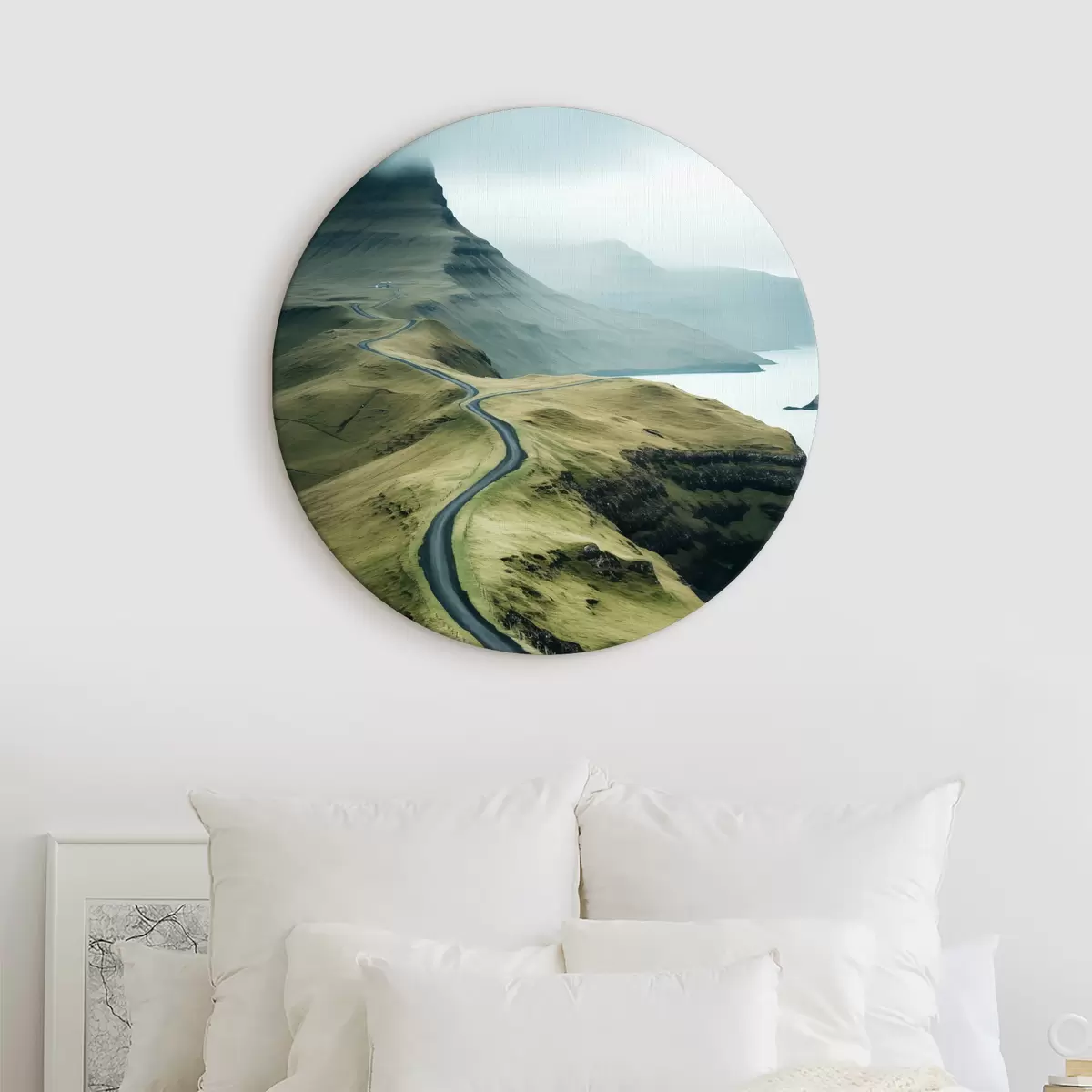 Кругла картина Мінімалістичний дорожній ландшафт на Фарерських островах біля моря Nr r40726