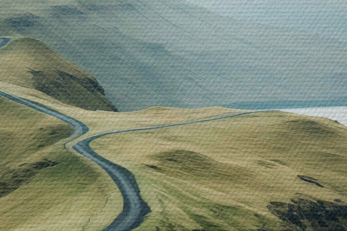 Кругла картина Мінімалістичний дорожній ландшафт на Фарерських островах біля моря r40726