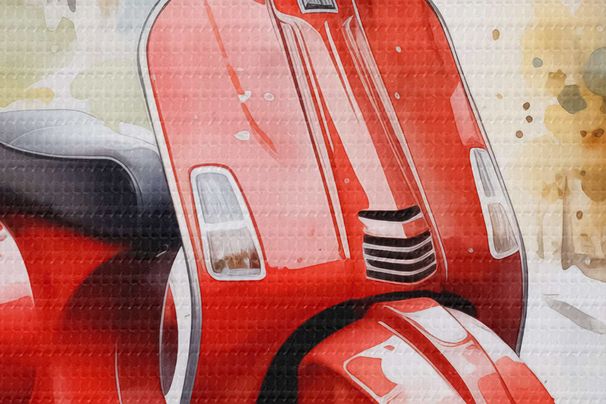 Кругла картина Червоний мотоцикл на вулиці Риму акварель Nr r40728