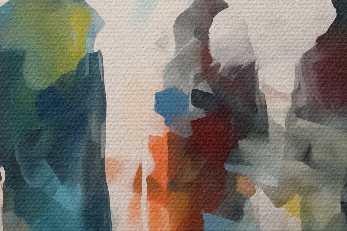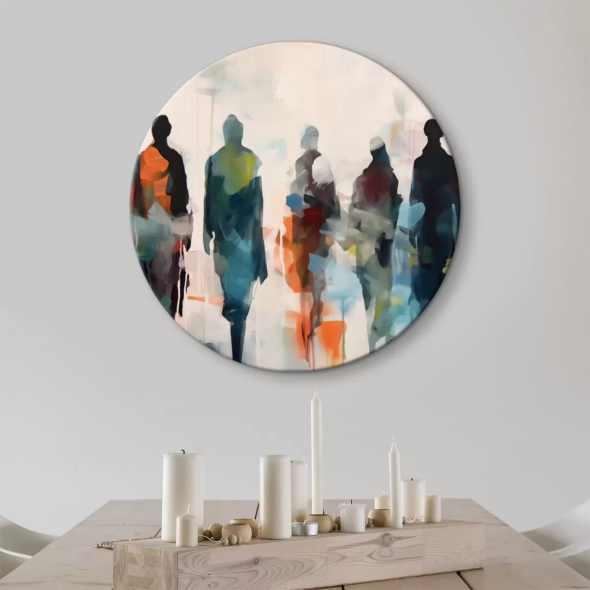 Кругла картина Силуети групи абстрактних людей, імітація мазків пензля r40752