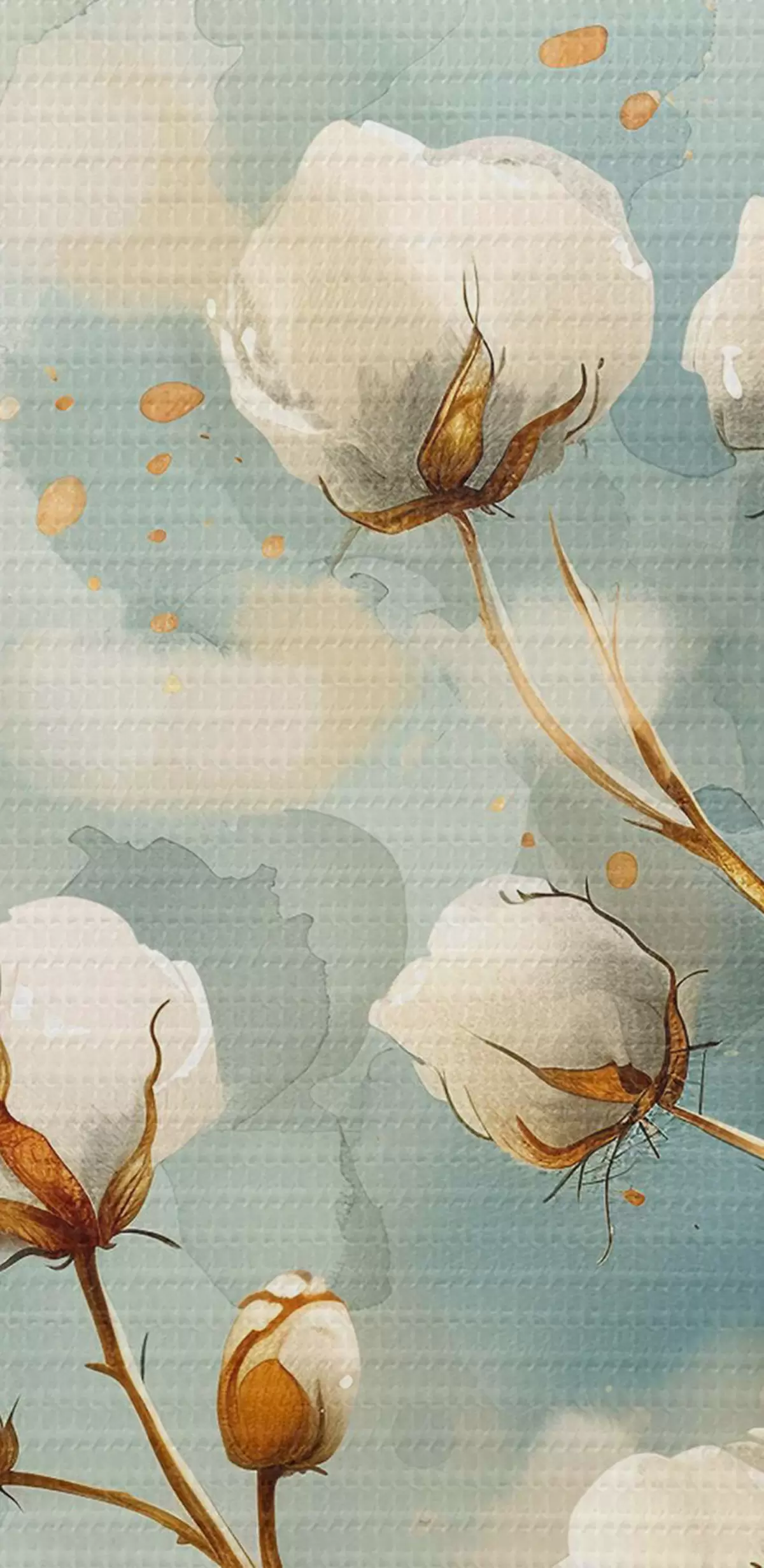 Кругла картина Гілочка бавовни на акварельному тлі Nr r40780