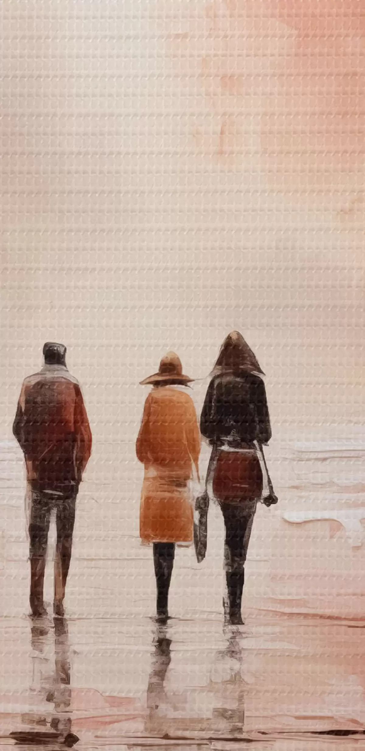 Кругла картина Люди гуляють у парку, абстракція, рожево-червоний колір Nr r40802