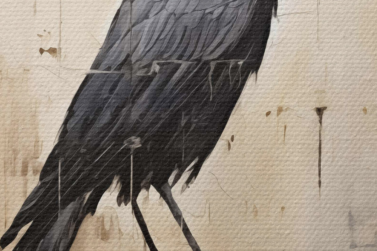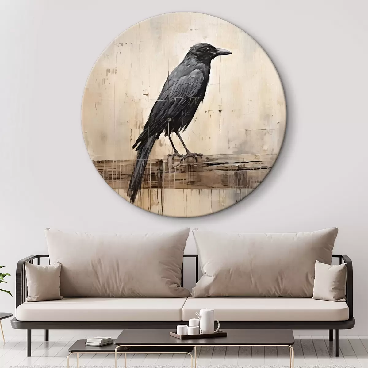 Кругла картина Чорний ворон сидить на колоді на абстрактному тлі r40808