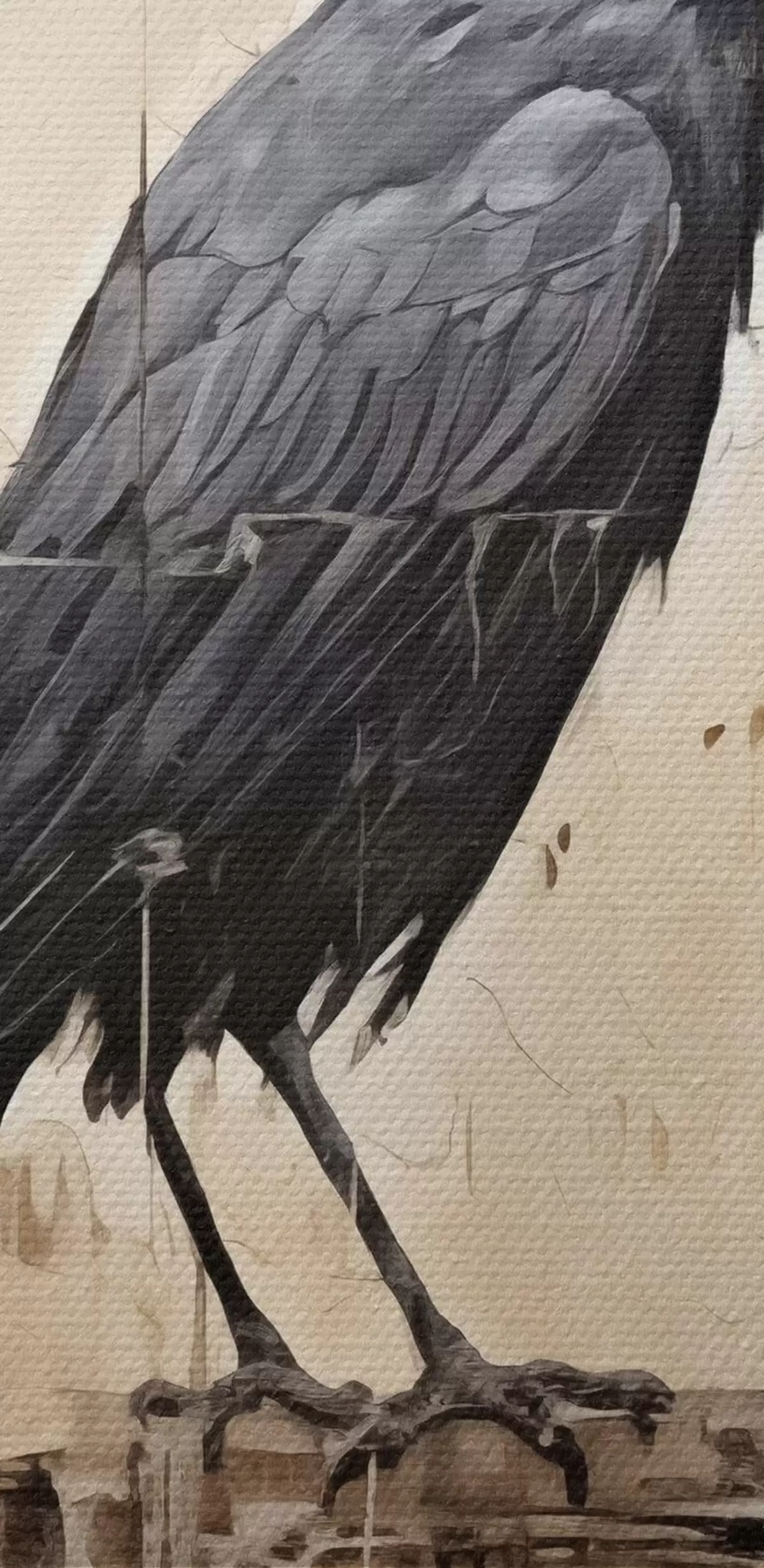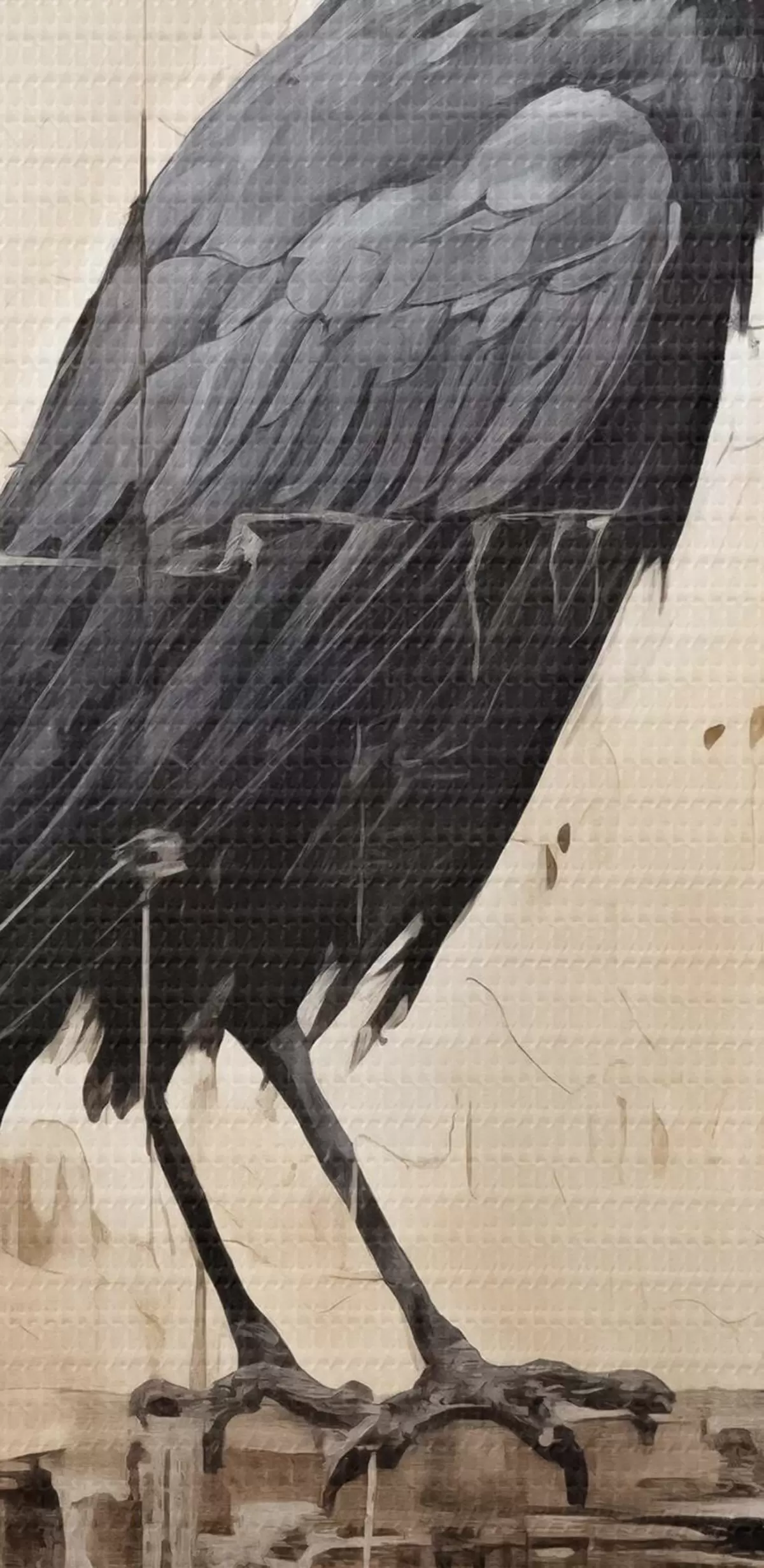 Кругла картина Чорний ворон сидить на колоді на абстрактному тлі Nr r40808