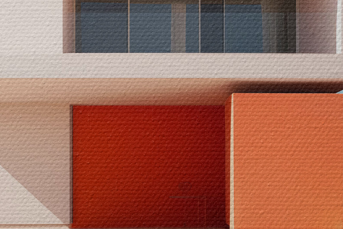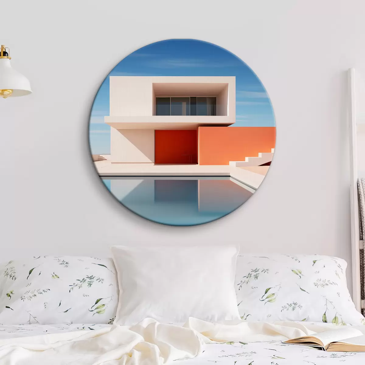 Кругла картина Мінімалістичний архітектурний ландшафт, будинок і басейн r40811