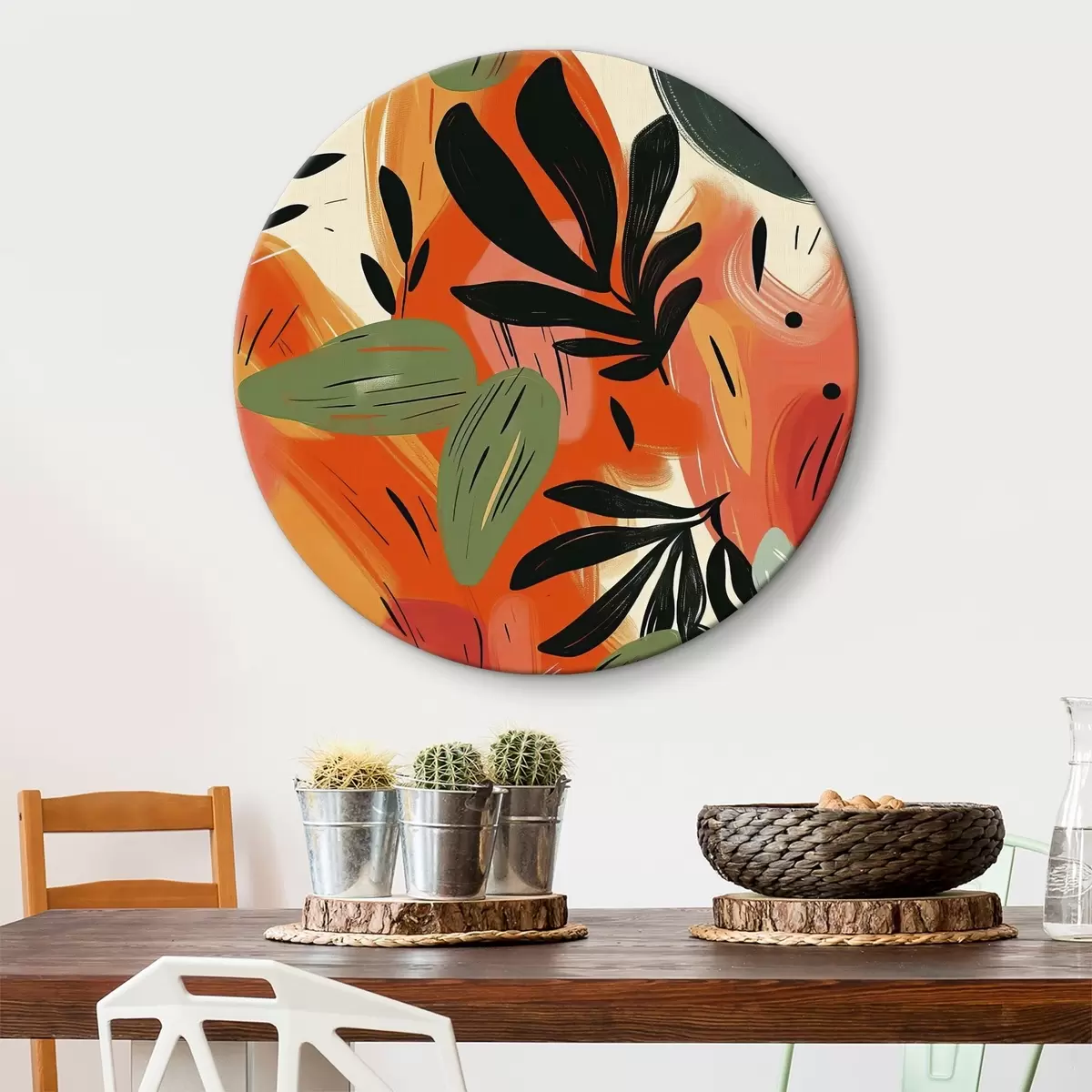 Кругла картина Абстрактний принт з квітами та листям Nr r40812