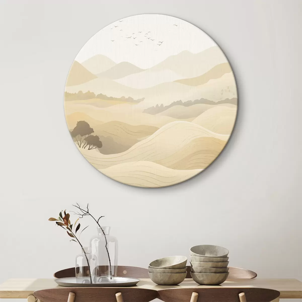 Кругла картина Пагорби, м'який колір, дерева Nr r40845