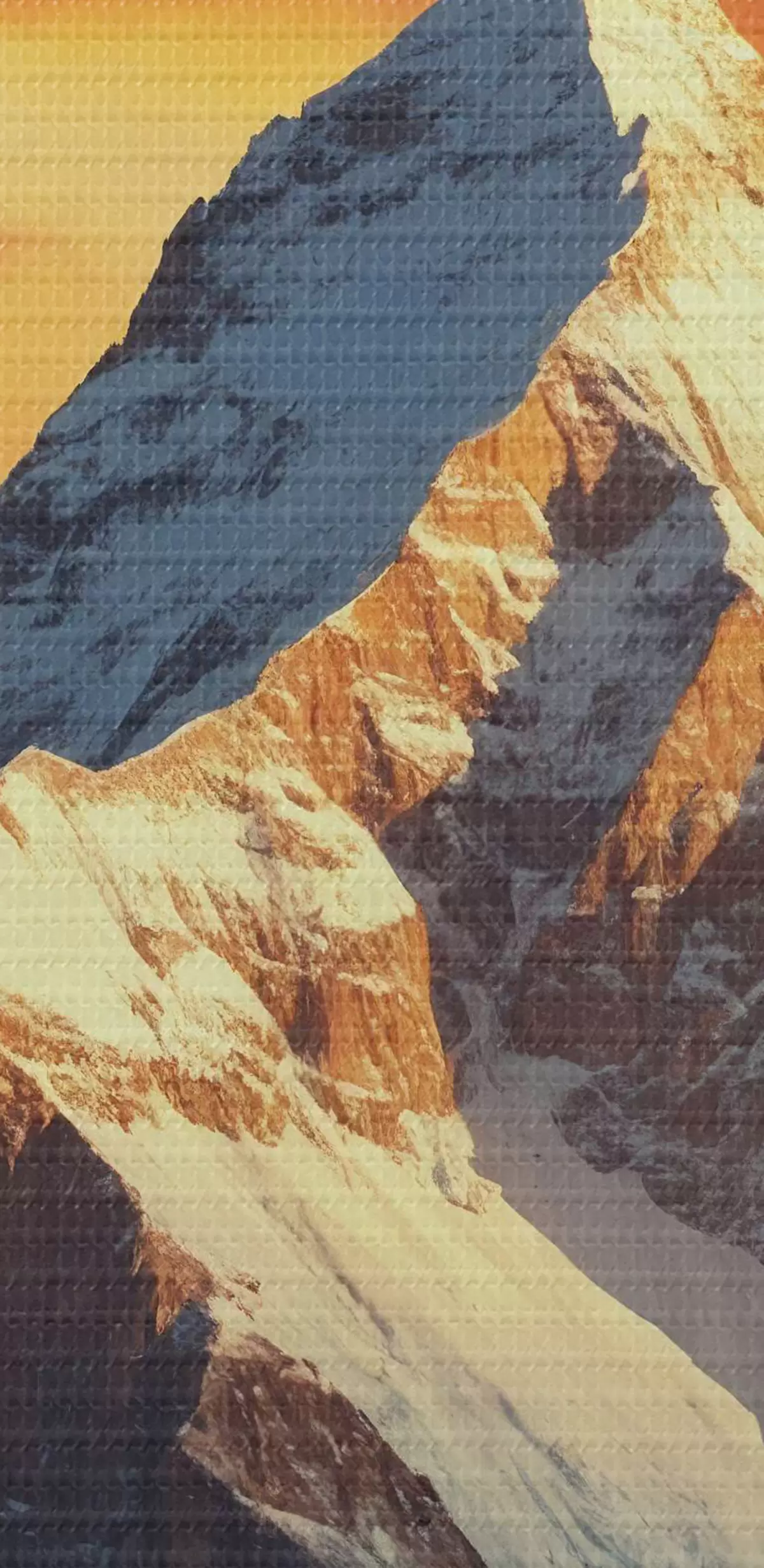 Кругла картина Засніжені гори та помаранчеве небо r40852