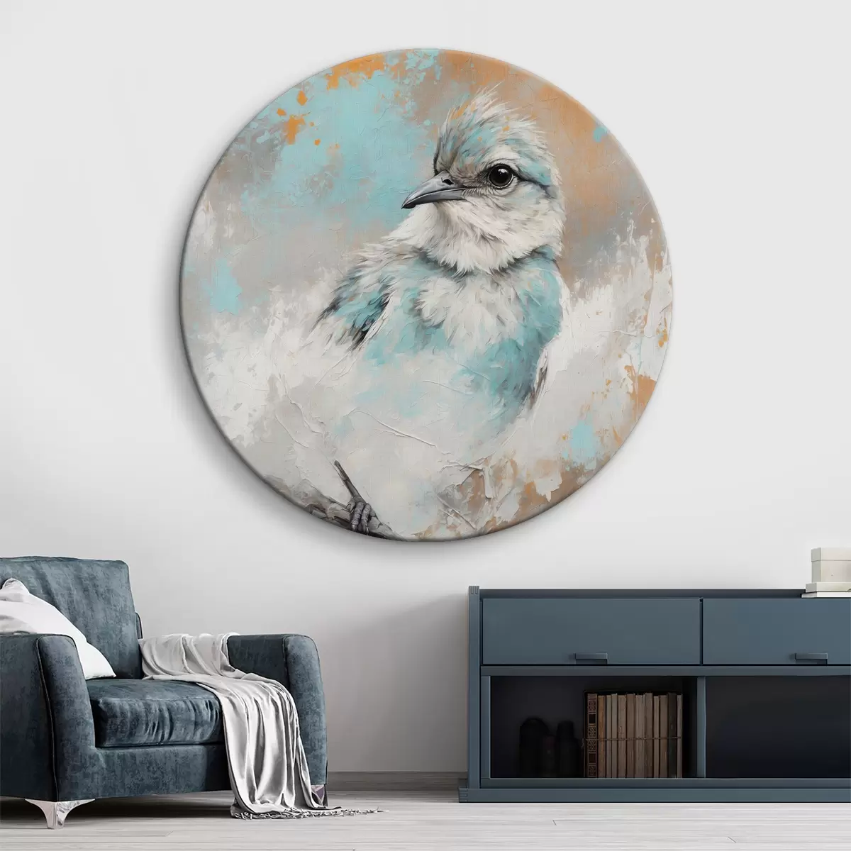 Кругла картина Птах на гілці на абстрактному тлі Nr r40853