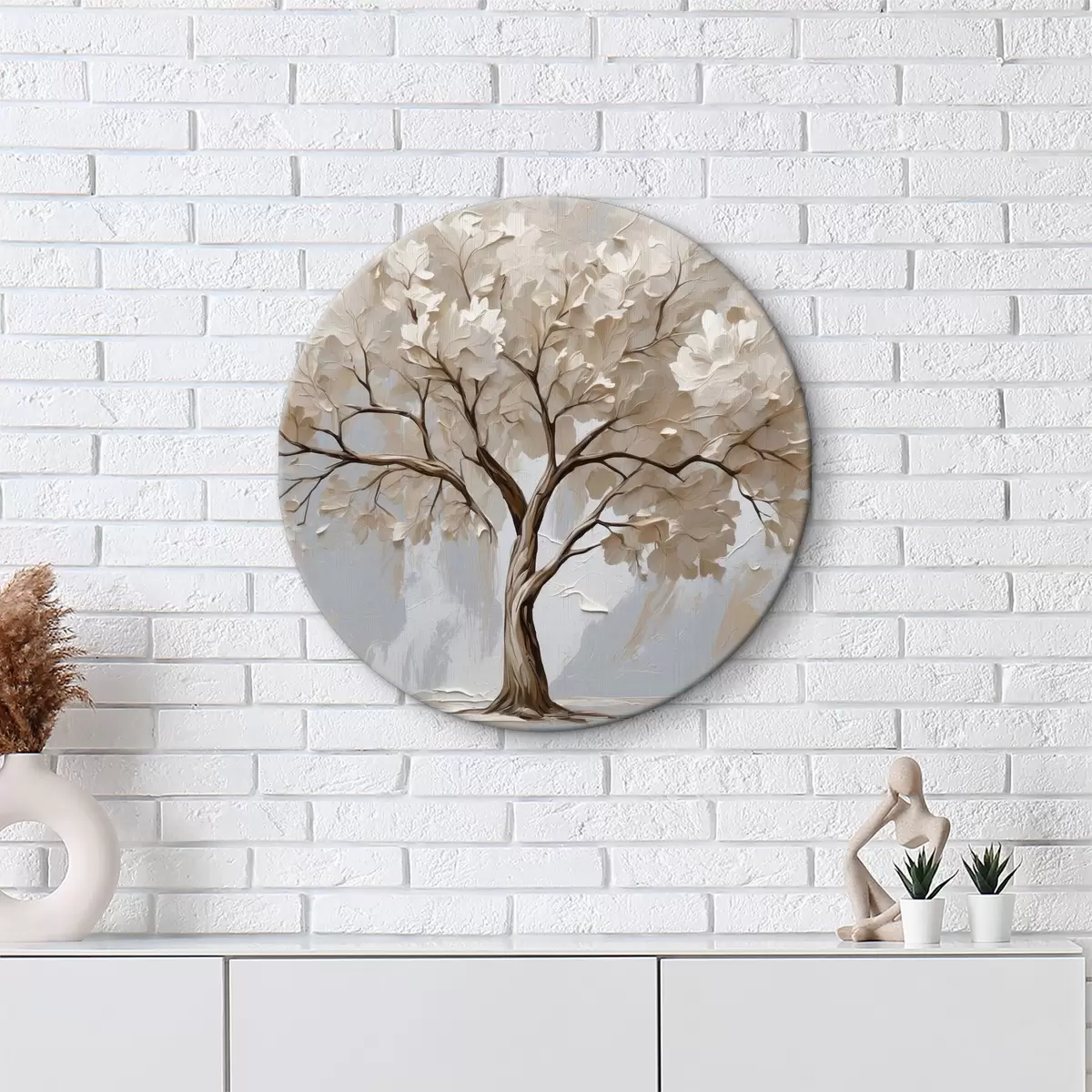 Кругла картина Біле дерево на абстрактному масляному тлі Nr r40860