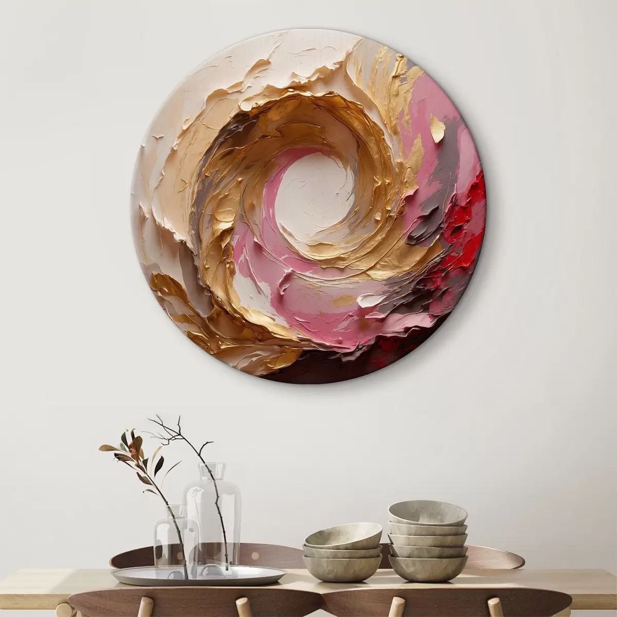Кругла картина Абстрактний олійний живопис з рожево-жовтими вихорами Nr r40863