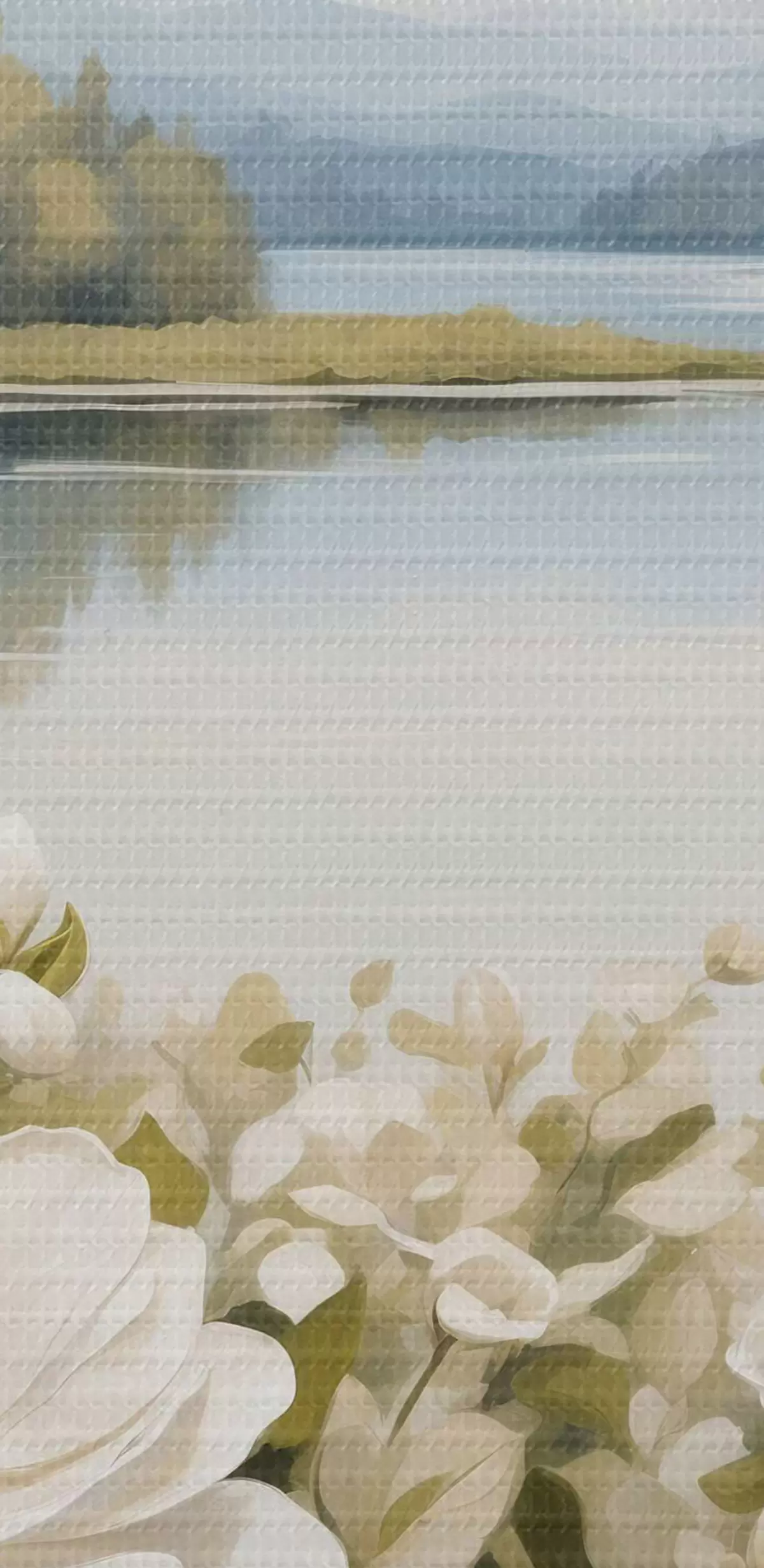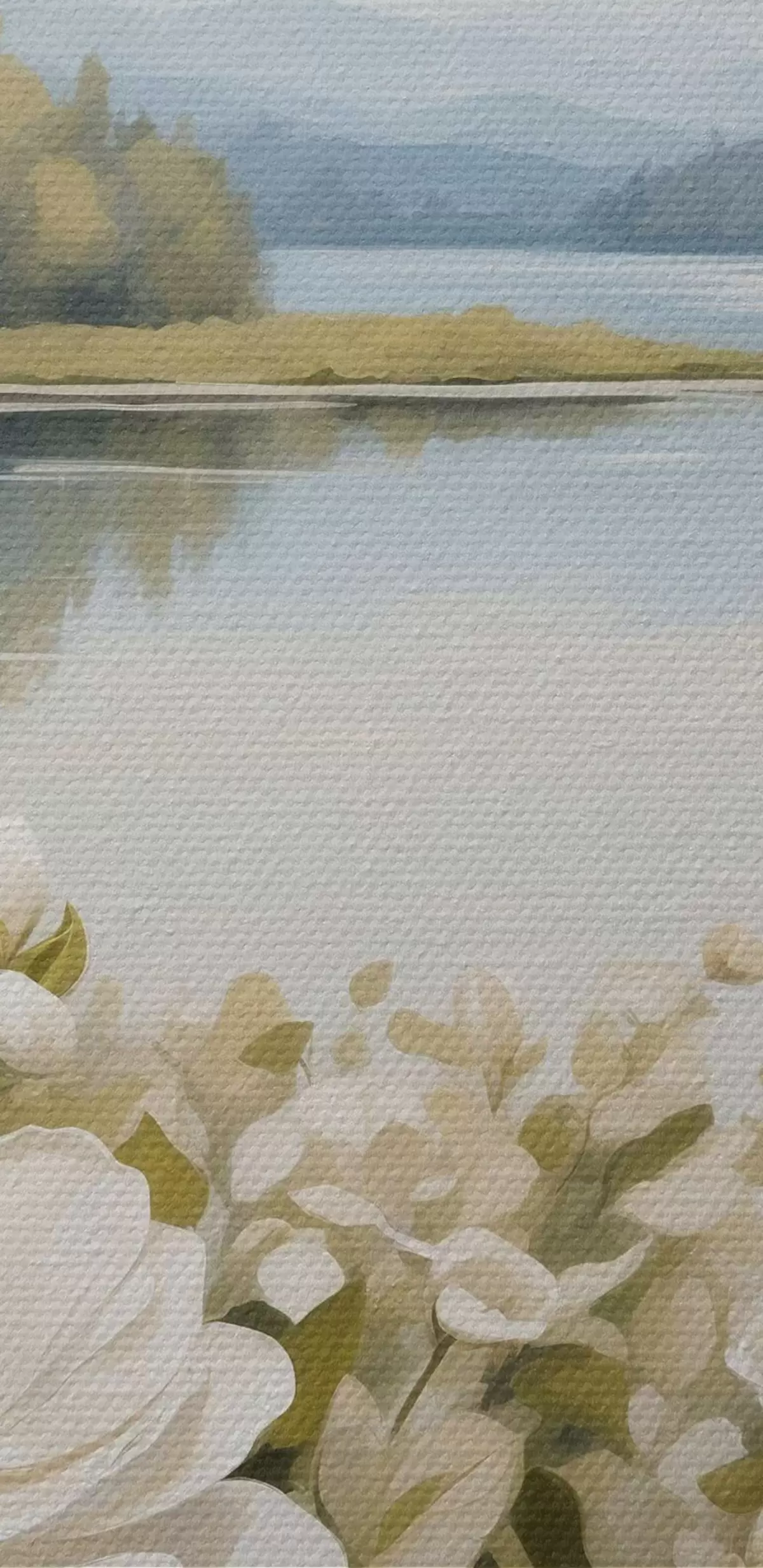Кругла картина Білі квіти на тлі річки Nr r40869