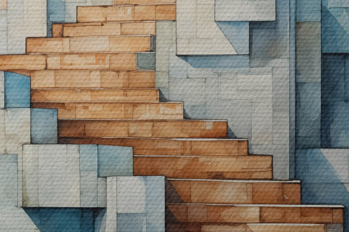 Кругла картина Кам'яні сходи абстрактний архітектурний пейзаж акварель Nr r40891