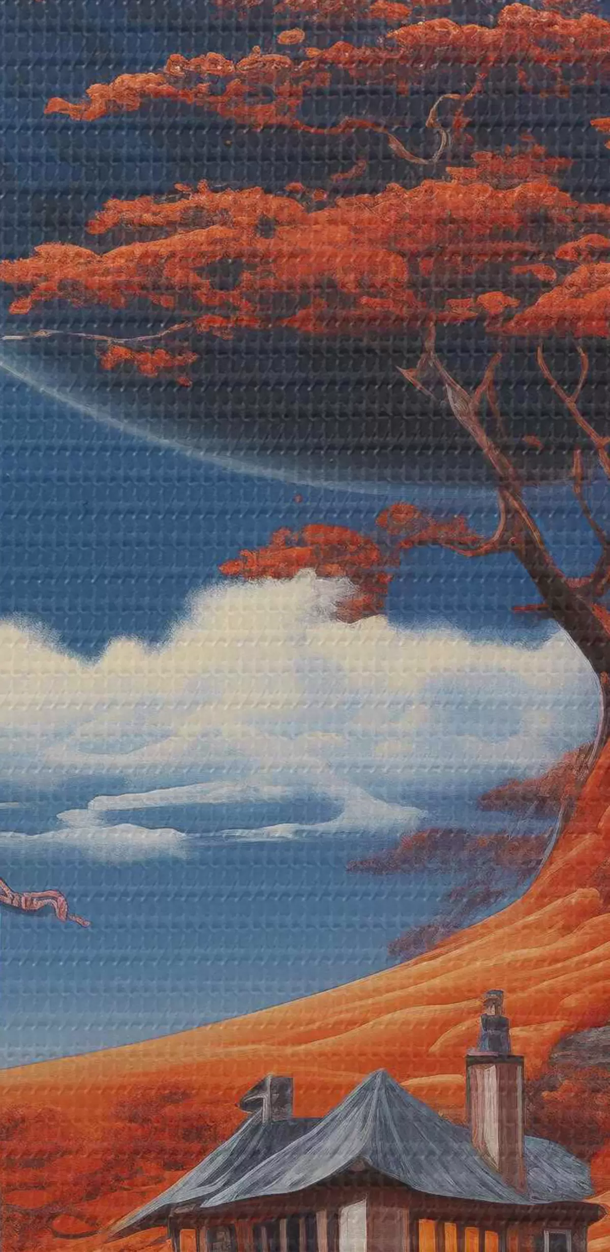 Кругла картина Космічна ілюстрація, планети, блакитне небо, будинок на пагорбі, дерева Nr r40946