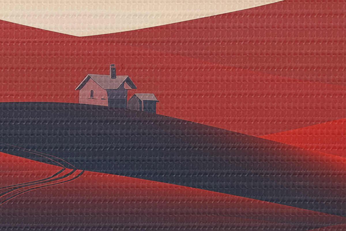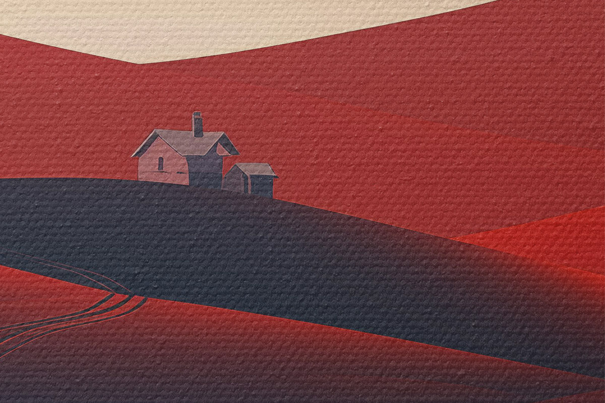 Кругла картина Мінімалістичний пустельний пейзаж з будинком і місяцем r40953