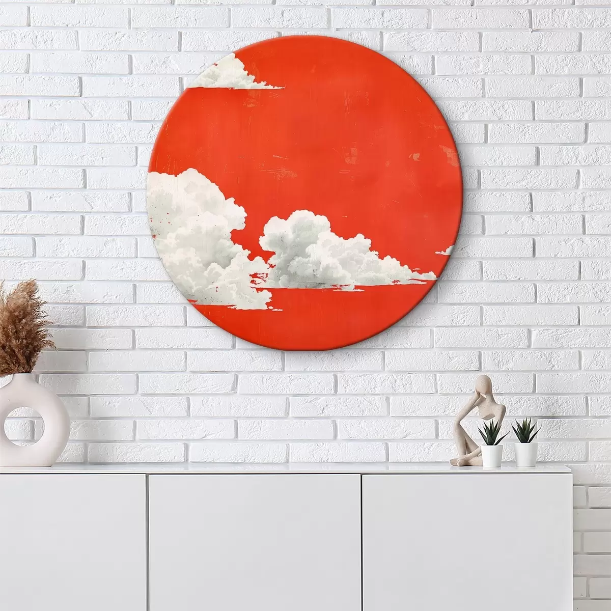 Кругла картина Червоне небо з білими хмарами Nr r40974