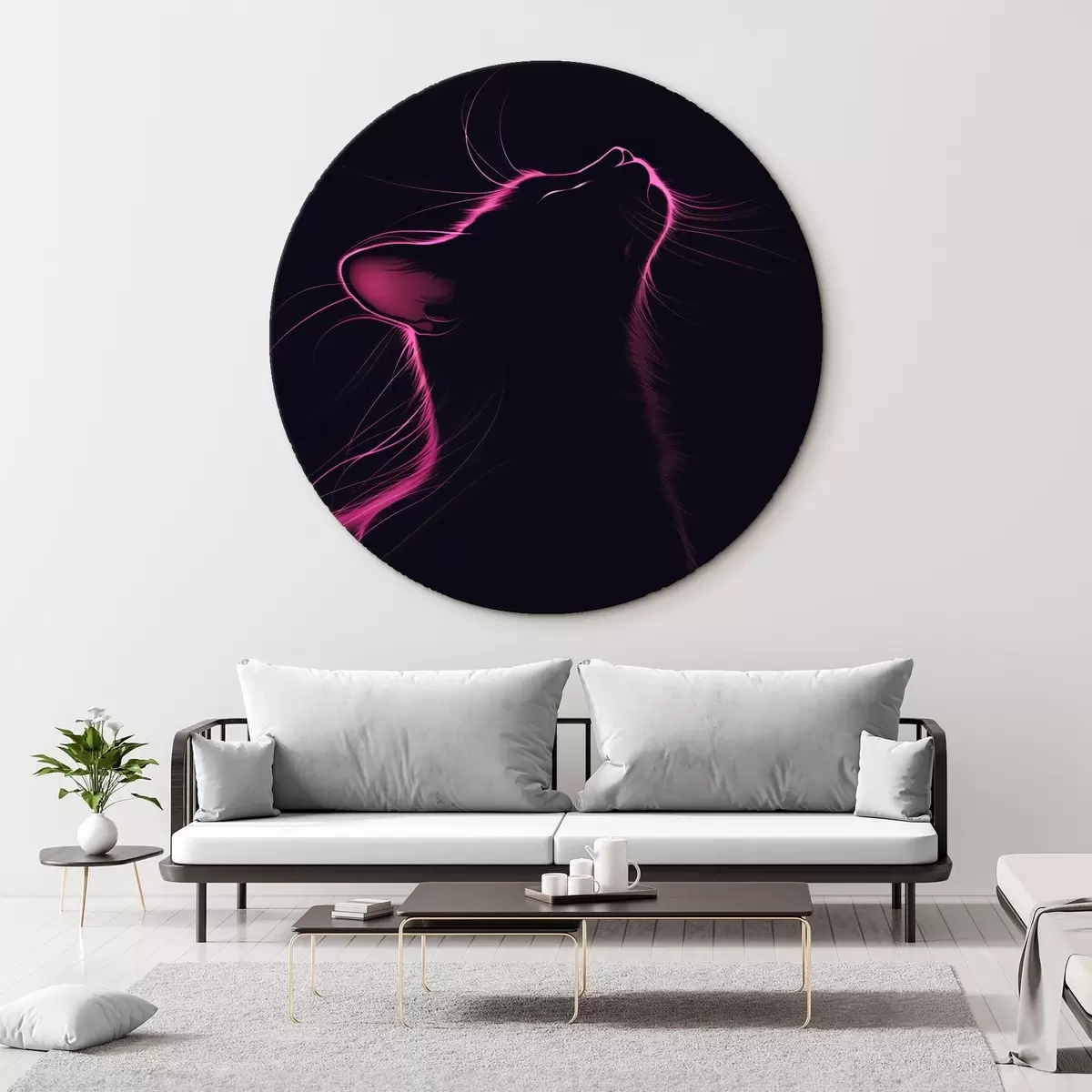 Кругла картина Рожевий неоновий кіт на чорному тлі Nr r40994