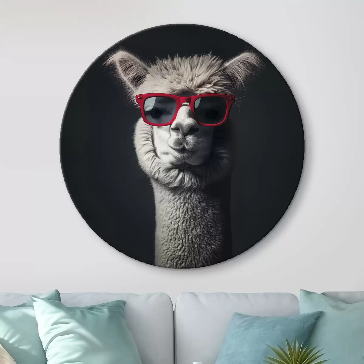Кругла картина Сіра лама в червоних окулярах r40996