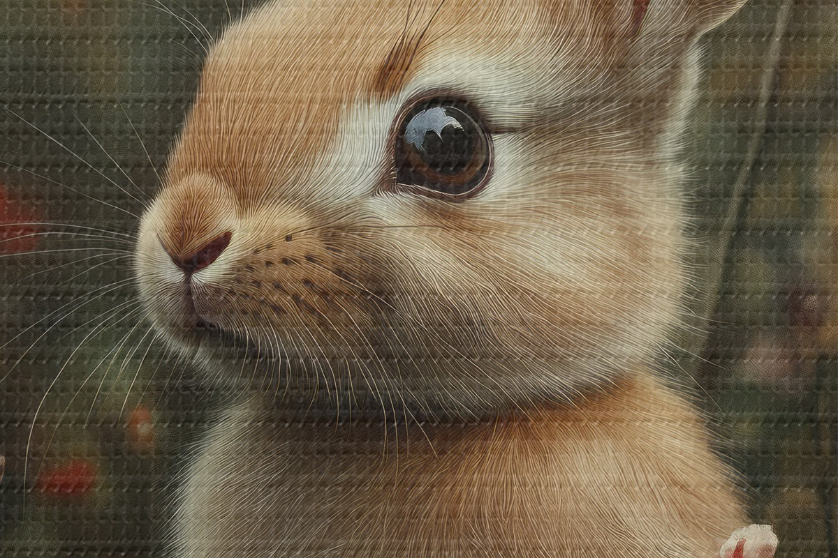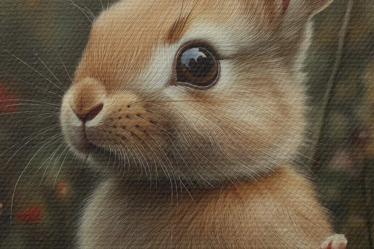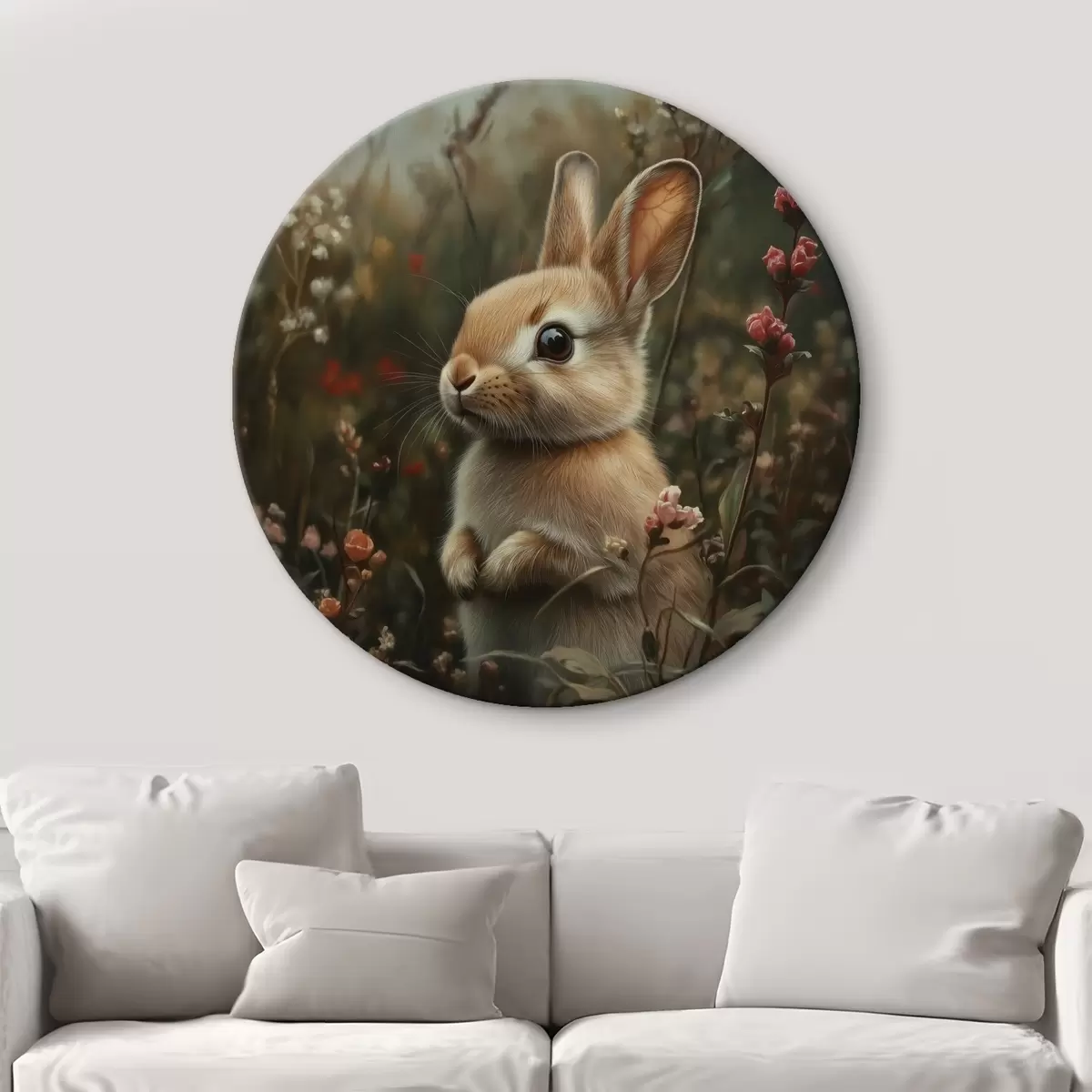 Кругла картина Милий зайчик у польових квітах у пастельних відтінках Nr r40998