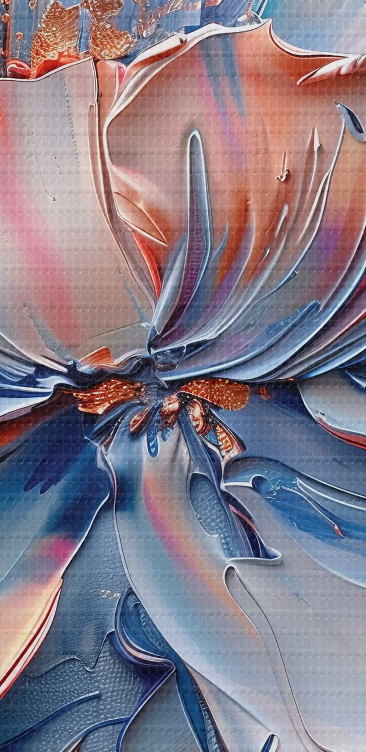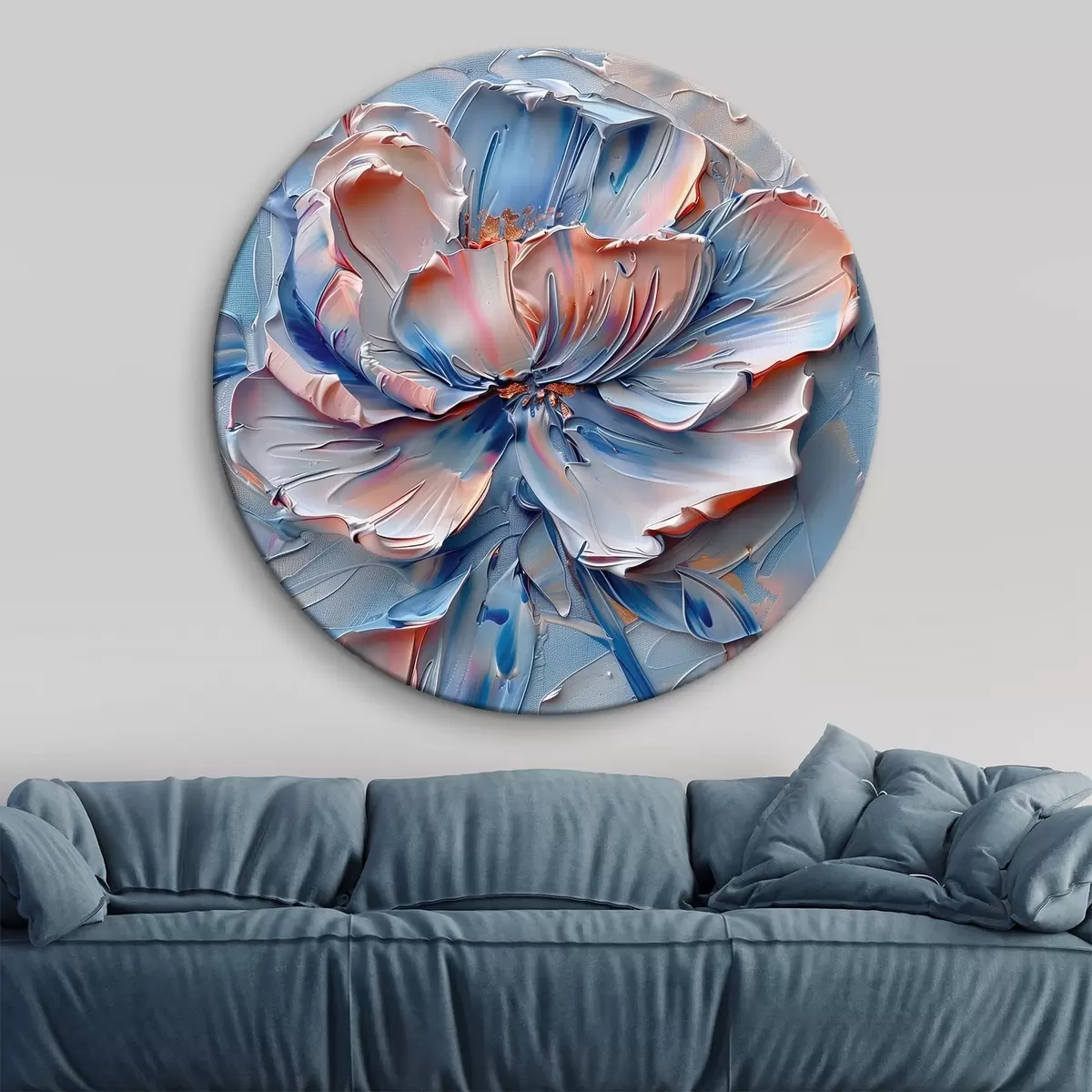 Кругла картина Велика квітка зі сміливими мазками синього та персикового кольорів Nr r41004