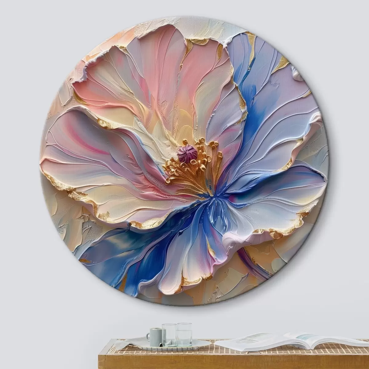 Кругла картина Велика квітка в ніжних відтінках рожевого і блакитного r41006