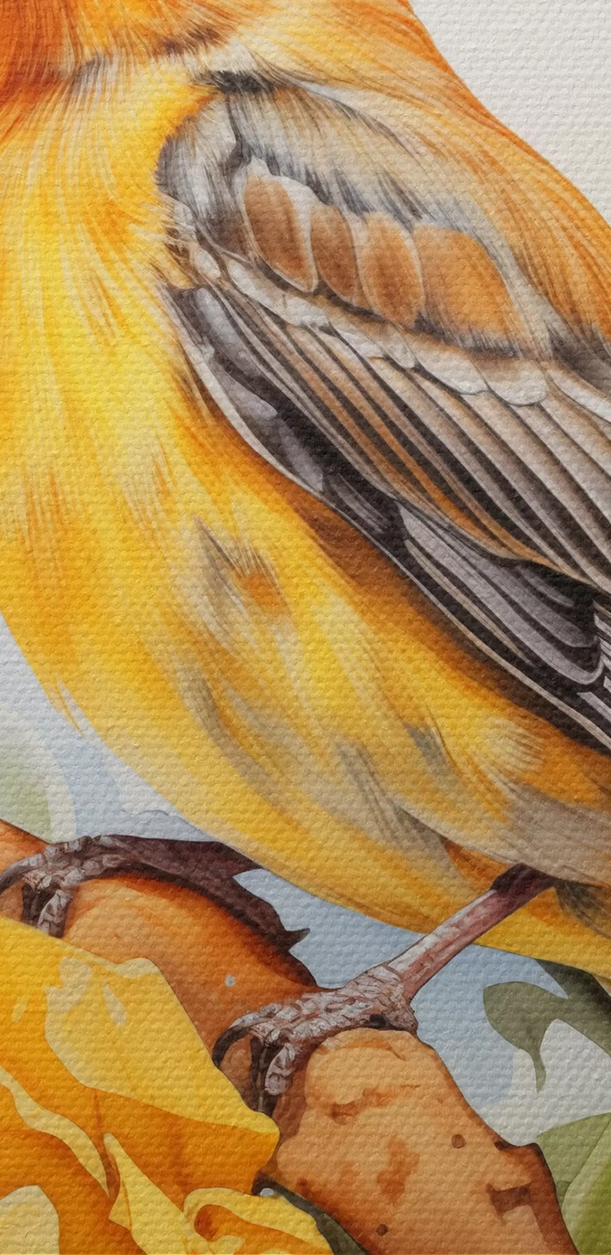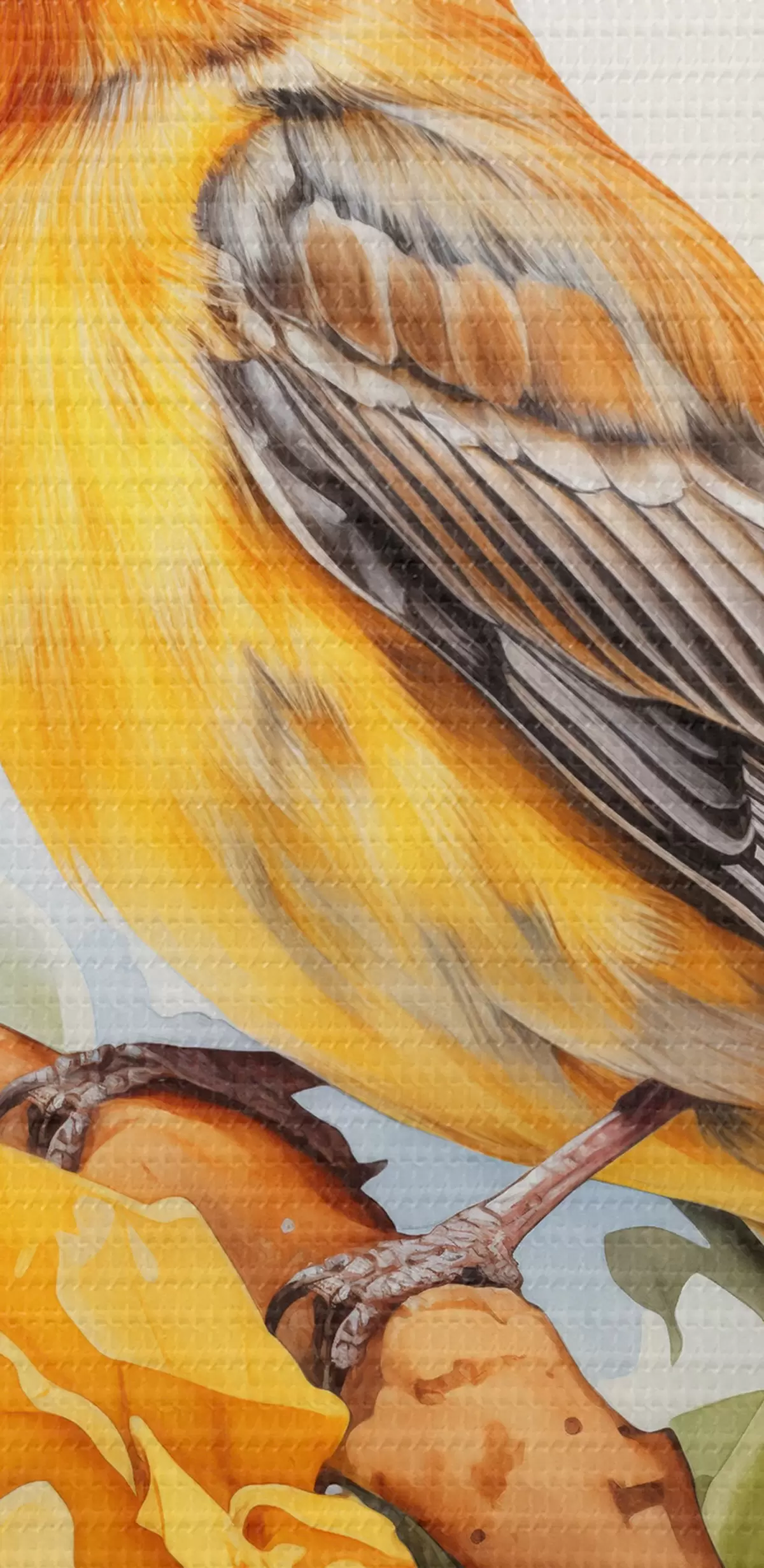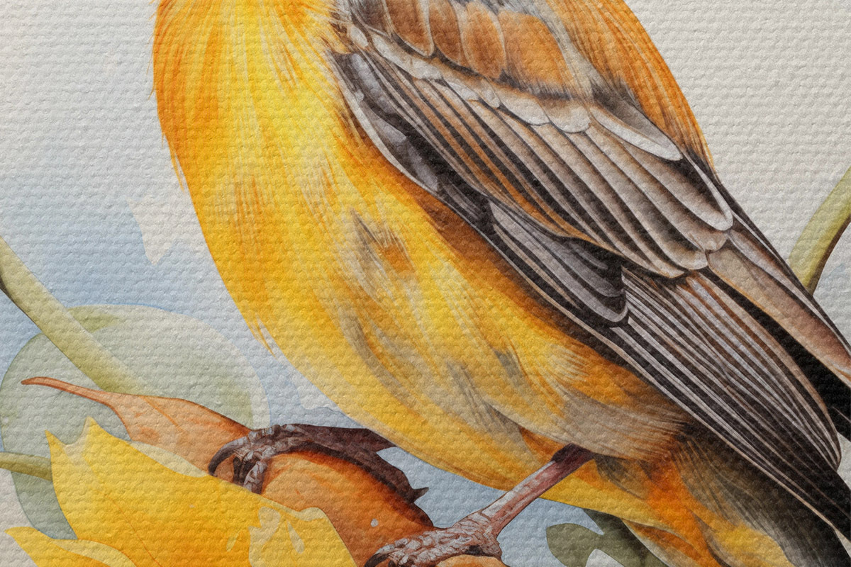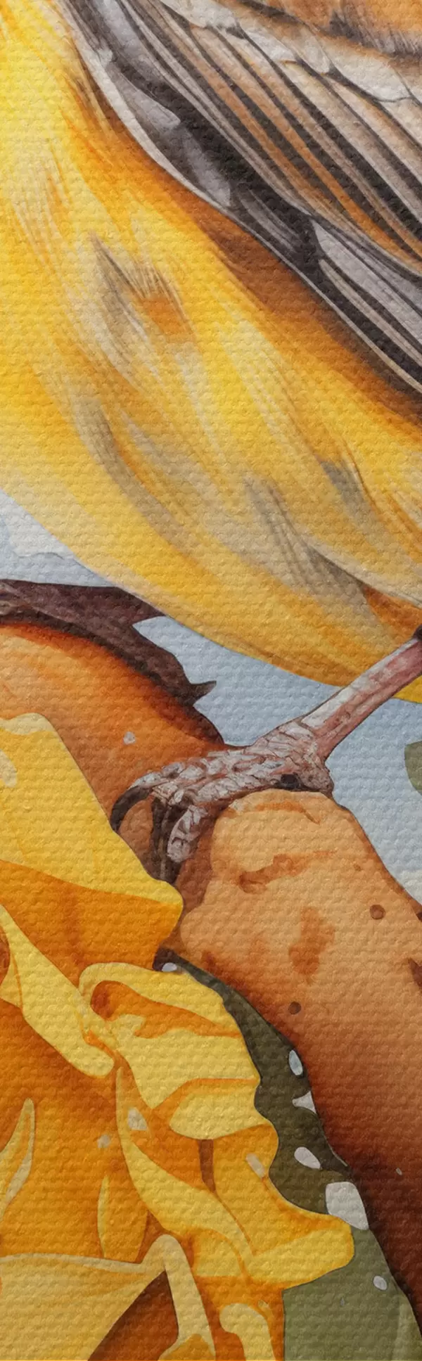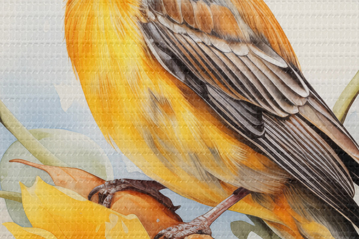 Кругла картина Жовтий птах, що сидить на соняшнику на акварелі Nr r41015