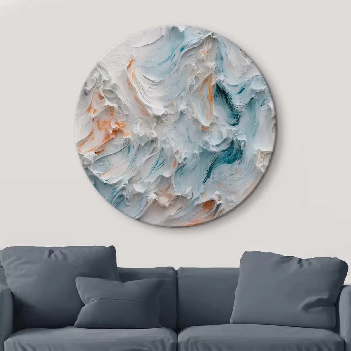 Кругла картина Абстракція в білому, помаранчевому та синьому кольорах r41026