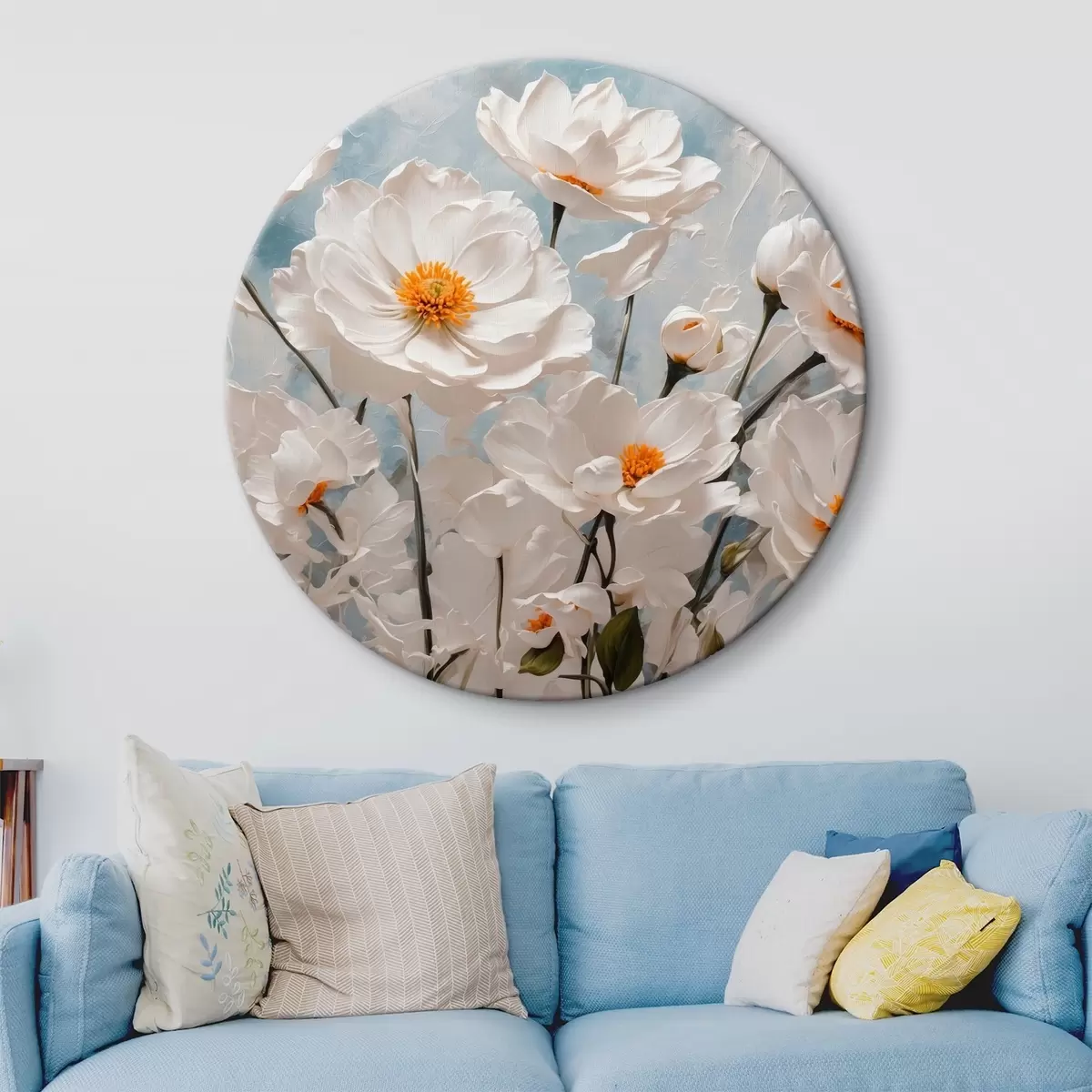 Кругла картина Білі квіти на синьо-білому масляному тлі Nr r41041