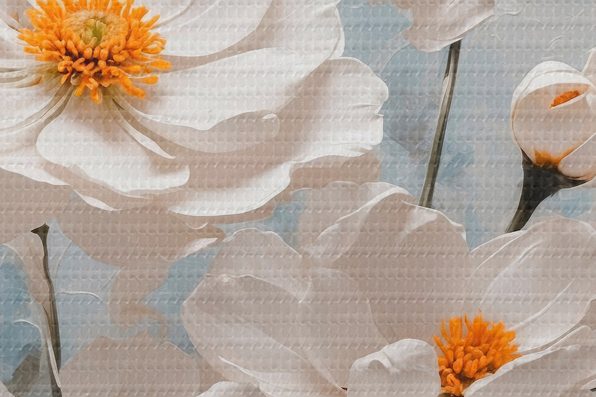 Кругла картина Білі квіти на синьо-білому масляному тлі r41041
