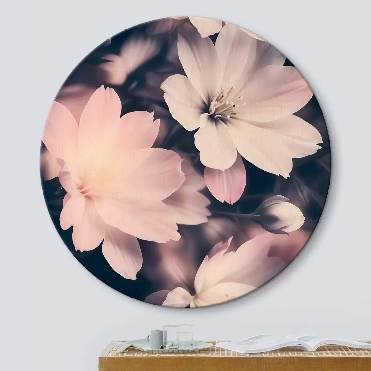 Кругла картина Ніжно-рожеві та білі квіти у вінтажному стилі з розмитим фоном r41084