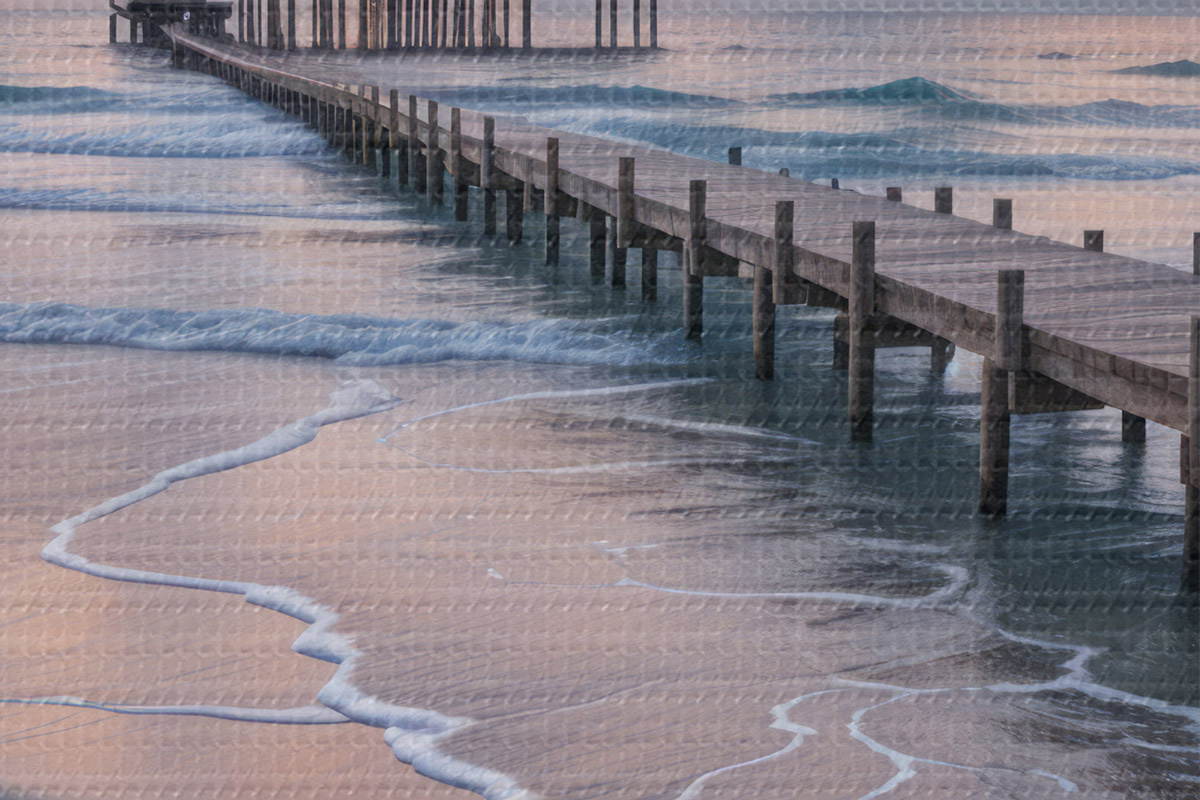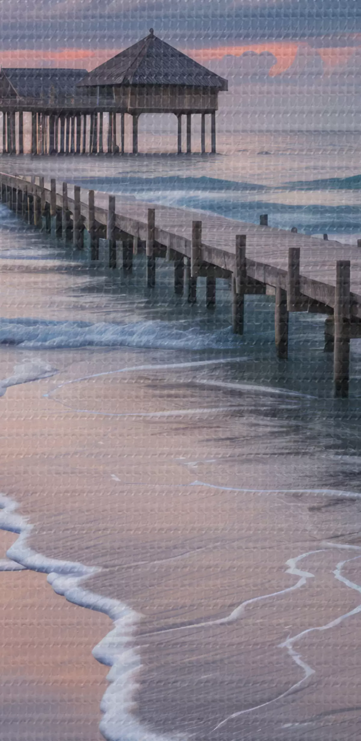 Кругла картина Дерев'яний пірс з видом на спокійний океан на заході сонця з різнокольоровими хмарами Nr r41091