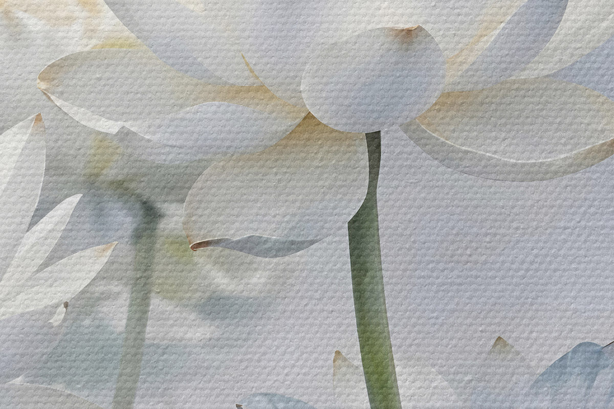Кругла картина Білі пастельні квіти лотоса на туманному абстрактному акварельному тлі r41100