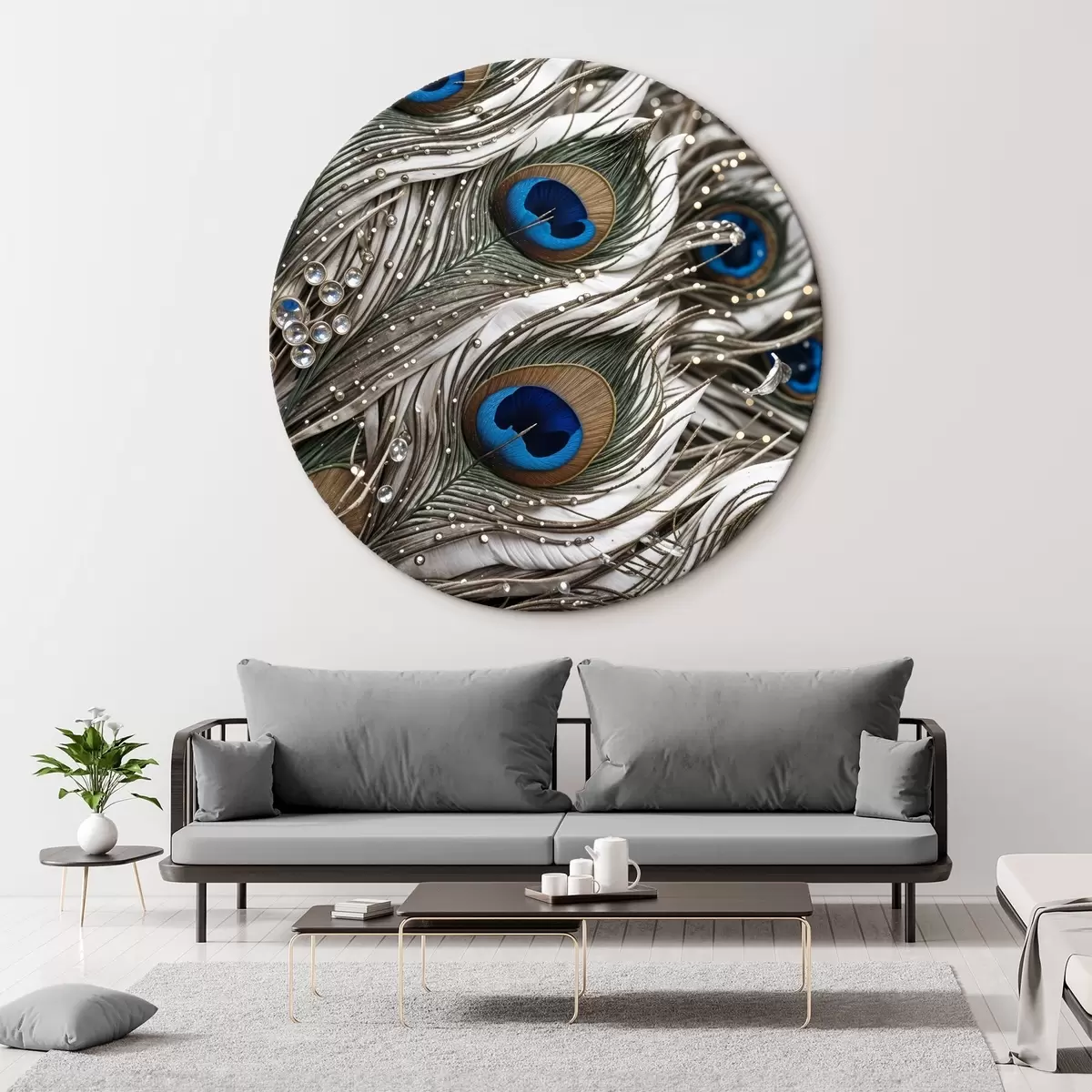 Кругла картина Яскраве павине пір'я зі складними візерунками та вражаючими блакитними візерунками Nr r41103