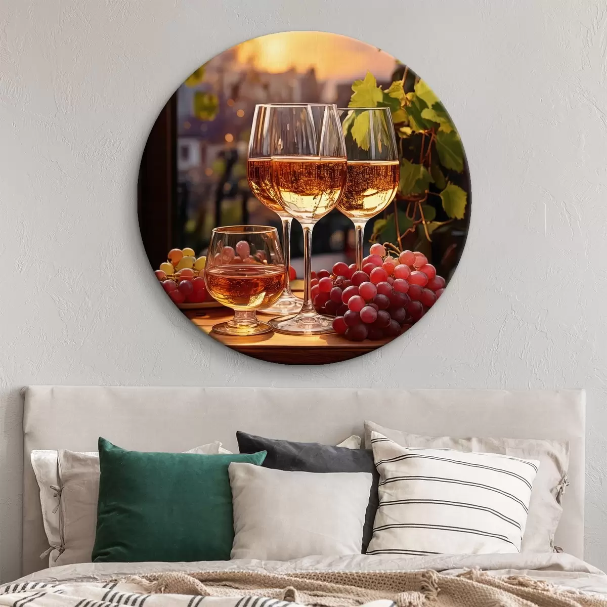 Кругла картина келихи з вином, виноград на столі, натюрморт Nr r41104
