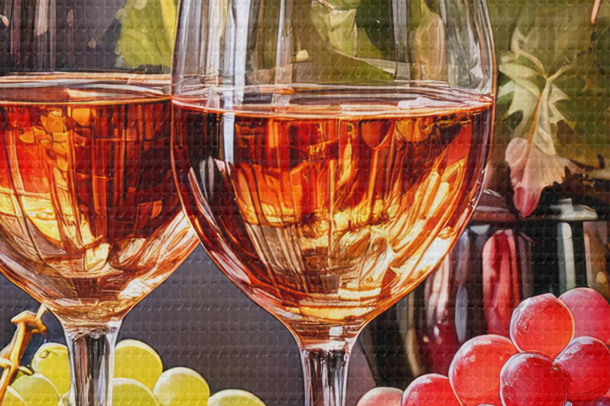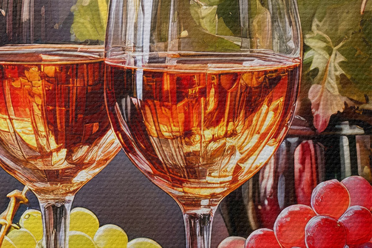Кругла картина келихи з вином і виноградом, натюрморт Nr r41105