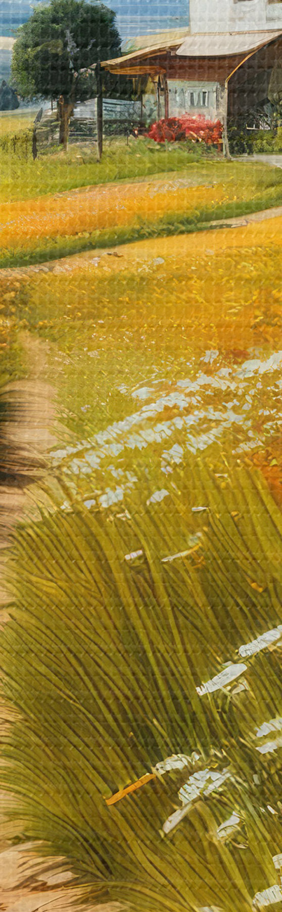 Кругла картина доріжка в квітучому полі та будинок Nr r41109