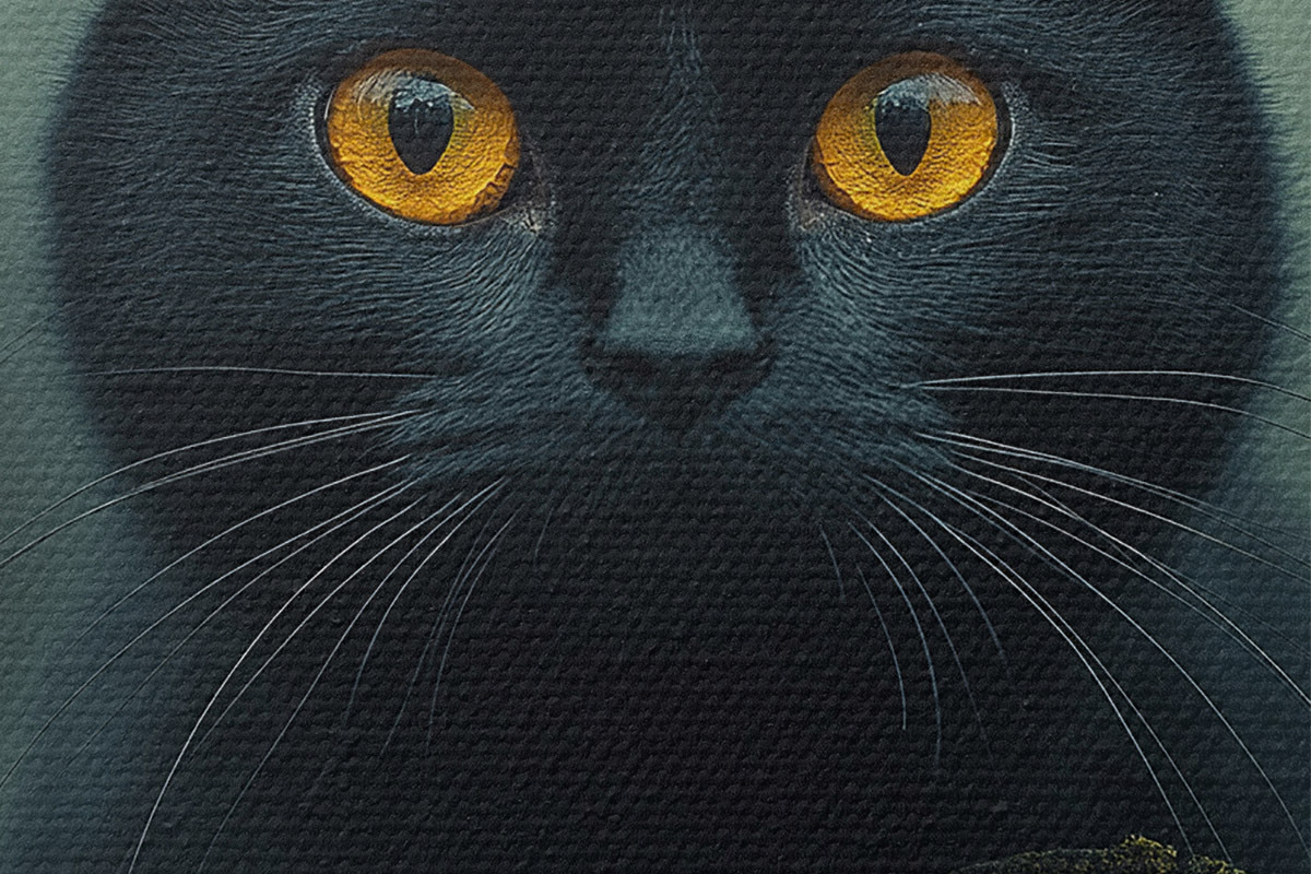 Кругла картина Чорний кіт і повний місяць на тлі Nr r41123