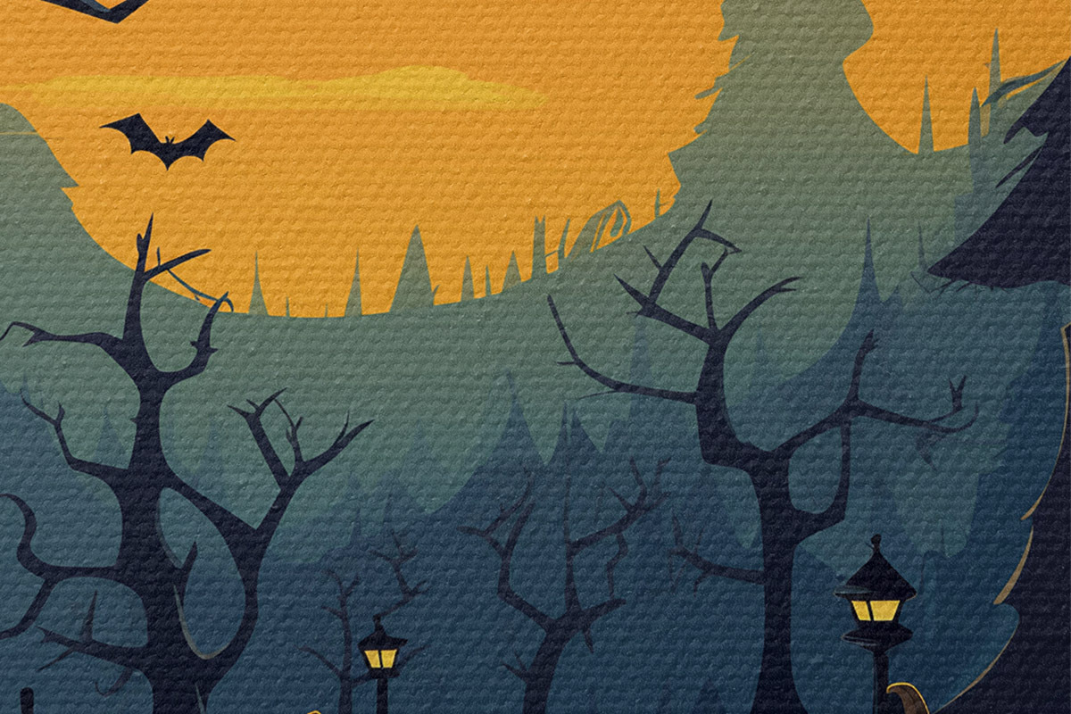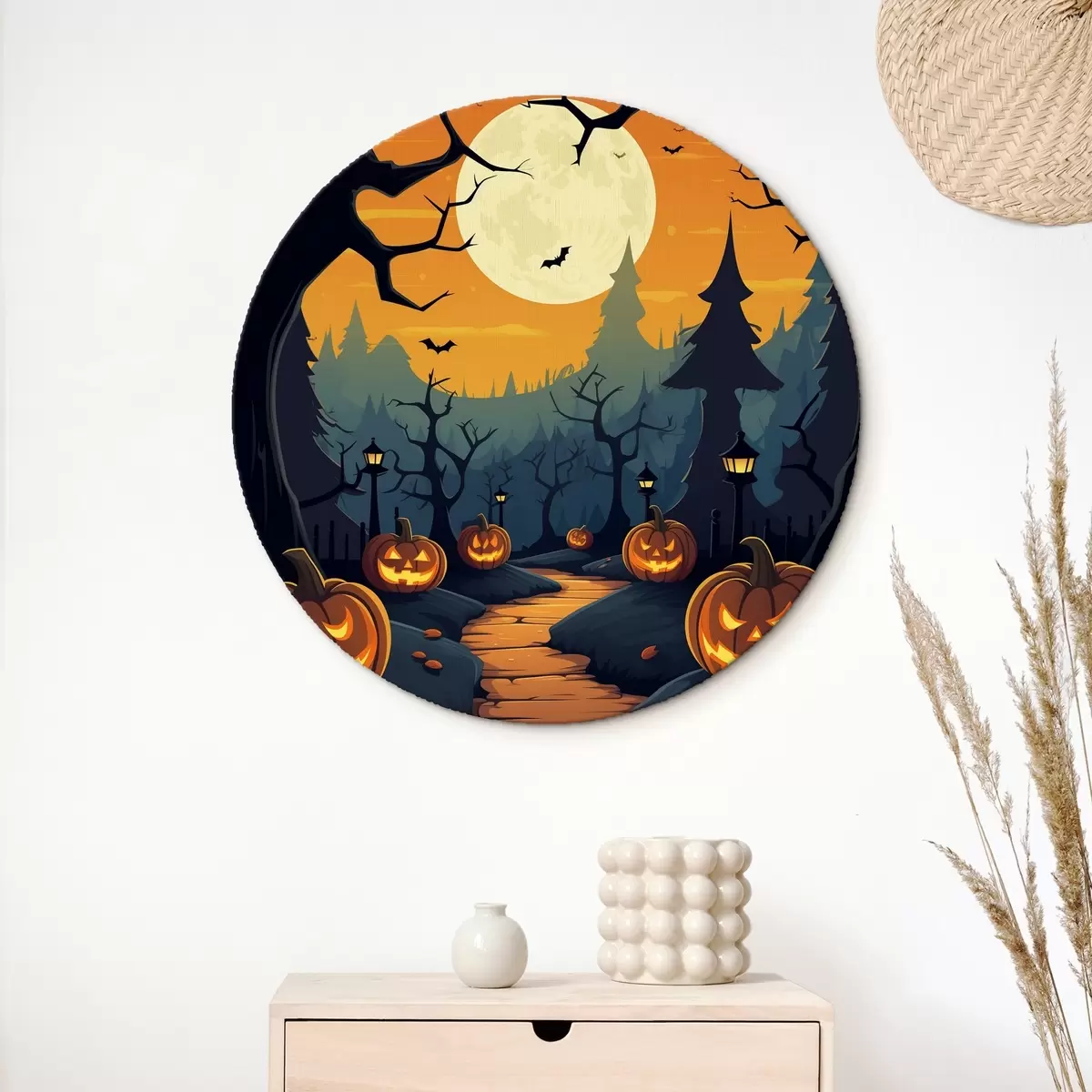 Кругла картина Хелловін, стежка в лісі Nr r41135
