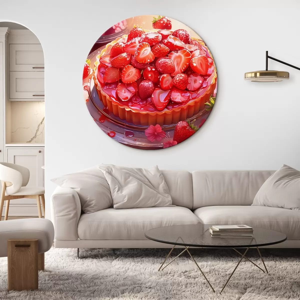 Кругла картина Полуничний торт, акварель, солодка пустеля, тепле сонячне світло Nr r41178