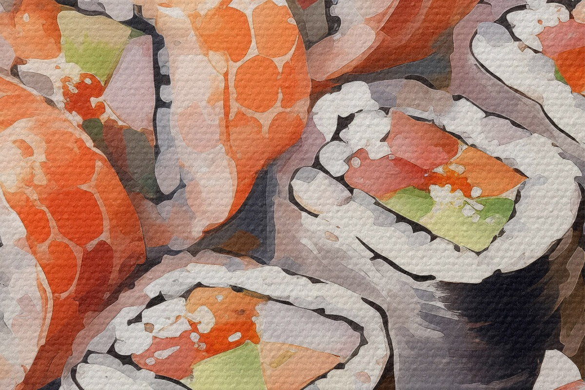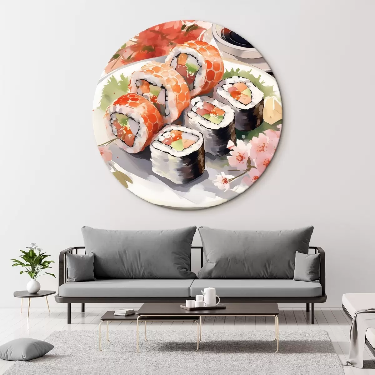 Кругла картина Суші на тарілці, акварель, квітковий, японський Nr r41179